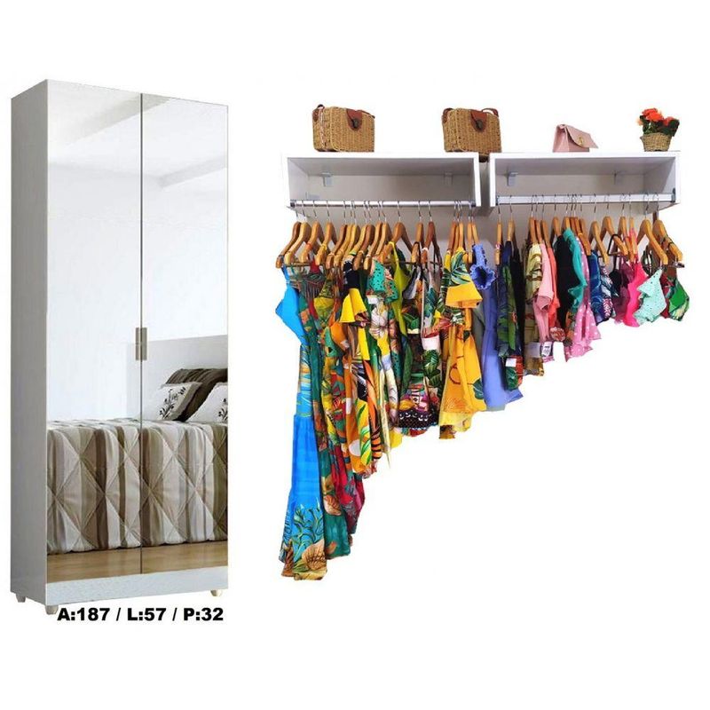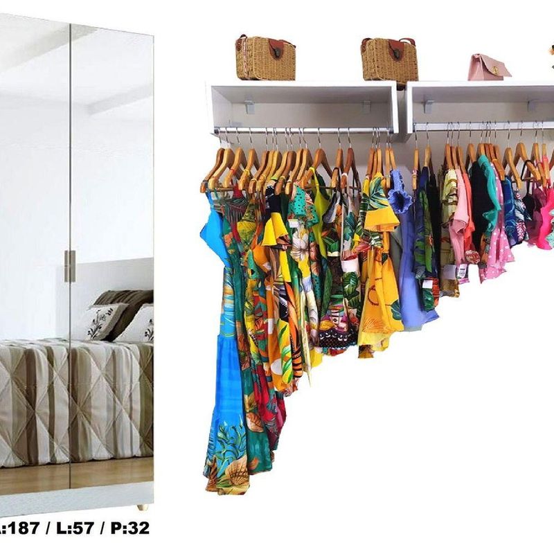 Sapateira com Espelho Linda + 2 Araras de 60cmDois cabideiros arara de 60cm cadaSapateira com espelhos e portas de abrir, para 30 pares.Uma sapateira de uma beleza indescritível, um produto encantador, que vai surpreender você e decorar com perfeição o seu ambiente. Com toda funcionalidade de um armário cheio de prateleiras, ótimo para organizar todos seus sapatos, aliado aos espelhos, que amplificam e sofisticam o ambiente e possibilitam aquela conferida no seu visual, essa sapateira é um item que não pode faltar na sua casa.Altura: 1,82m / Largura: 57cm / Profundidade: 32cmCor: BrancaMarca: Magia MóveisGarantia: 03 Meses contra s de fabricação.