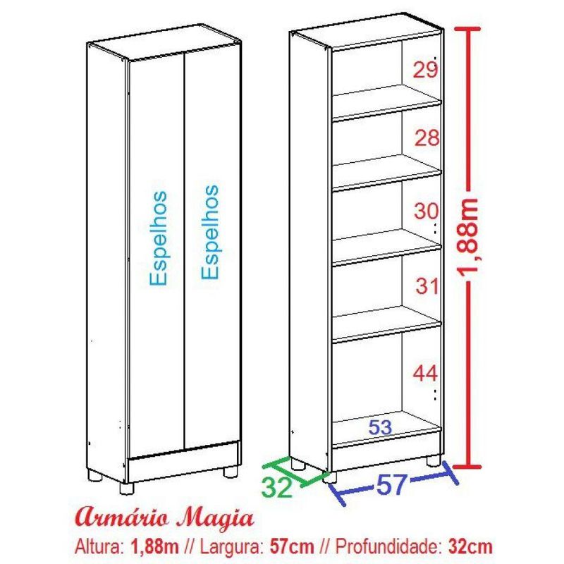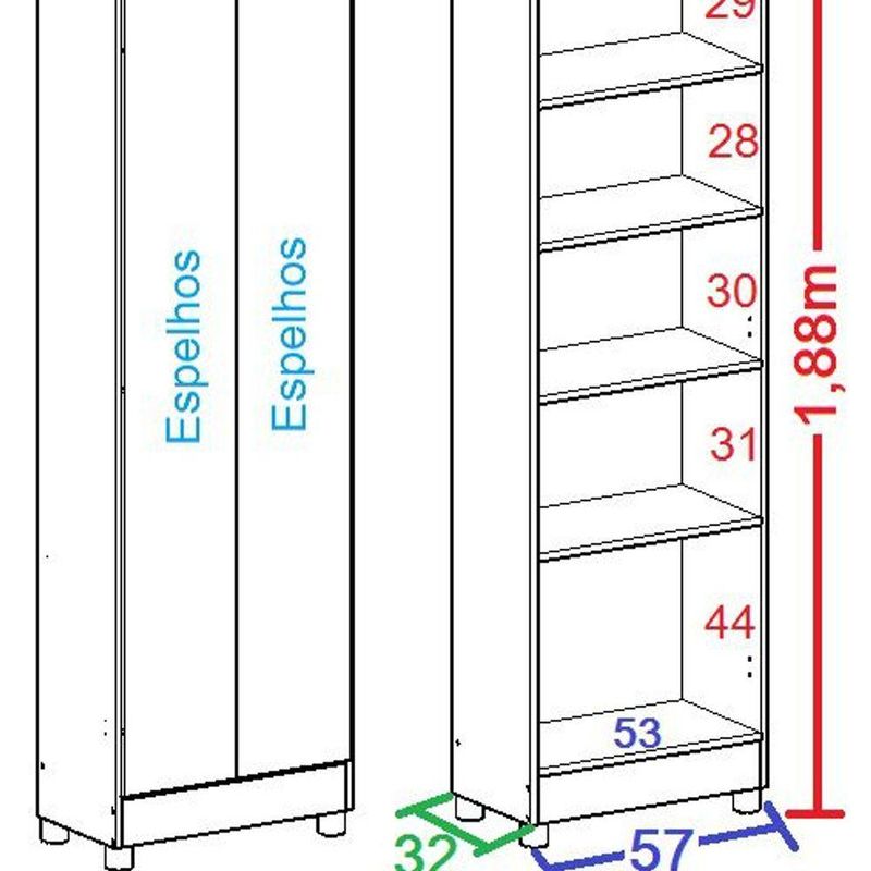 Sapateira com Espelho LindaUma Sapateira com espelhos e portas de abrir, para 30 pares. Super linda.Uma sapateira de uma beleza indescritível, um produto encantador, que vai surpreender você e decorar com perfeição o seu ambiente. Com toda funcionalidade de um armário cheio de prateleiras, ótimo para organizar todos seus sapatos, aliado aos espelhos, que amplificam e sofisticam o ambiente e possibilitam aquela conferida no seu visual, essa sapateira é um item que não pode faltar na sua casa.Altura: 1,82m / Largura: 57cm / Profundidade: 32cmCor: BrancaMarca: Magia MóveisGarantia: 03 Meses contra defeitos de fabricação.