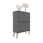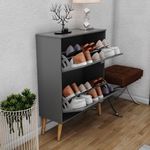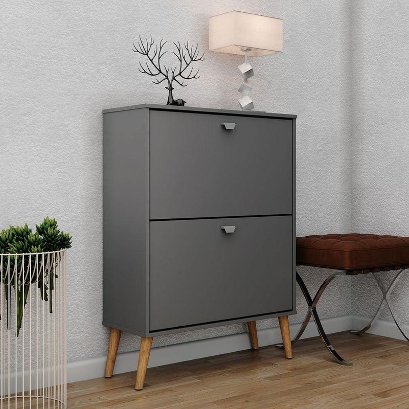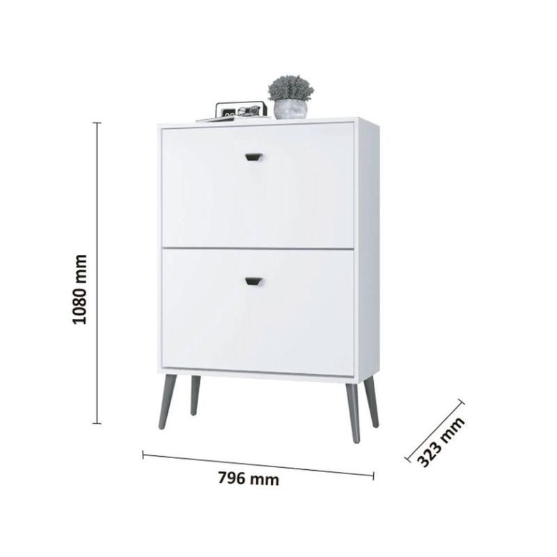 Sapateira Mudy Cinza - MóveisaquiA Sapateira Mudy - MoveisAqui com suas 2 gavetas articuladas e divisórias internas foi pensada para garantir a organização do seu ambiente sem ocupar muito espaço. Seus pés palito e seu design clean complementam a decoração mantendo seu dormitório charmoso e ões do produto montado:Altura: 108 cmLargura: 79,6 cmProfundidade: 32,3 cmObservações:- Produzido MDF e MDP;- Pés em madeira maciça estilo retrô;- Gavetas articuladas;- Comporta aproximadamente 12 pares de calçado;- Pintura ultravioleta