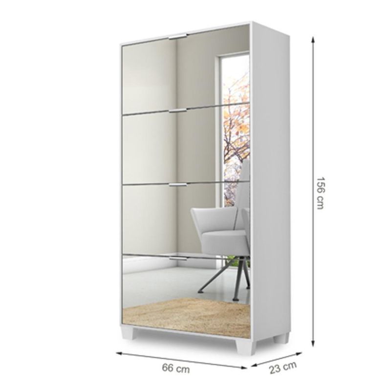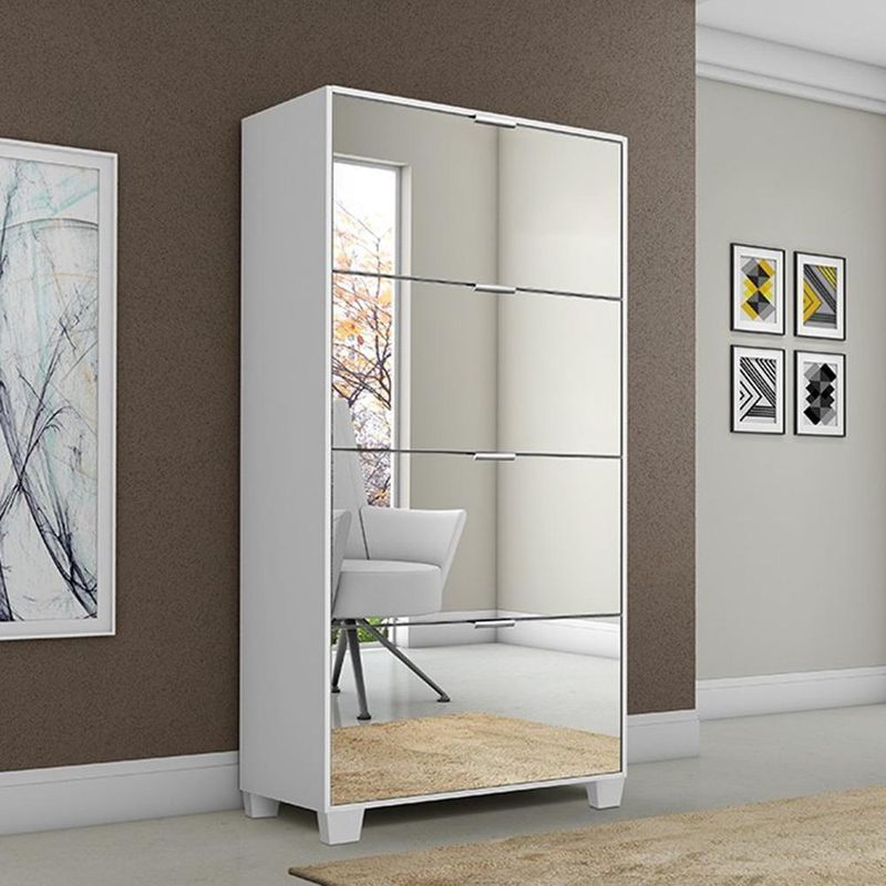 Sapateira Pequim Com Espelho - Branco BrancoSapateira 4 Portas com Espelho Pequim MDP Retrô Moderna Quarto PráticaA Sapateira Pequim é a combinação perfeita entre funcionalidade e sofisticação para o seu quarto. Com design moderno e espelho embutido, ela foi desenvolvida para aliar praticidade e beleza ao seu ambiente. Produzida em MDP de alta qualidade, oferece durabilidade e um ótimo aproveitamento de espaço. Suas 4 portas garantem a organização ideal dos seus calçados, mantendo o ambiente limpo e estiloso.Características TécnicasDimensões:- Altura: 156 cm- Largura: 66 cm- Profundidade: 23 cm- Peso: Consulte o fabricanteMateriais e estrutura:- Produzido em MDP de alta resistência, ideal para uso diário- Espelho na porta frontal, agregando funcionalidade e sofisticação- Puxadores em alumínio, resistentes e de fácil manuseio- Corrediças metálicas para abertura suave das portas- Articuladores em PVC, garantindo maior durabilidade- Pés em madeira no estilo retrô, que trazem charme ao móvel- Pintura UV: mais resistência, brilho e acabamento de qualidade- Garantia: 3 meses contra de fabricaçãoBenefícios e Funcionalidades- Espelho Embutido: Ideal para facilitar sua rotina e ampliar visualmente o espaço.- Ampla Capacidade de Armazenamento: 4 portas que acomodam diversos pares de sapato.- Estilo Retrô Moderno: Combinação perfeita para decorações contemporâneas e clássicas.- Durabilidade: Materiais de qualidade e pintura UV proporcionam maior vida útil ao móvel.- Compacta e Funcional: Ideal para quartos, closets ou halls de entrada.Observações Importantes- Evite exposição direta ao sol, calor ou umidade excessiva.- Para limpeza, utilize apenas pano seco ou levemente umedecido com água.- Não use produtos abrasivos, como álcool, solventes ou acetonas.- Imagens meramente ilustrativas. Objetos decorativos não acompanham o produto.- A tonalidade do produto pode variar conforme a iluminação e o monitor.- Montagem: Acompanha manual detalhado. A não oferece de montagem.Conteúdo da Embalagem- 1 Sapateira Pequim com Espelho- 1 Manual de InstruçõesSapateira com Espelho, 4 Portas, MDP, Moderna, Retrô, Pequim, Quarto, Organização, Calçados, Espelho Decorativo, Móveis Funcionais, Pés de Madeira, Pintura UV, Puxador Alumínio, Estilo e Praticidade, Montagem Fácil, Compacta Altura: 156 cm | Largura: 66 cm | Profundidade: 23 cm | Requer Montagem: Sim | Quantidade de caixas de embalagem: 1 | Fabricante: Rede Móveis | Cor: Branco