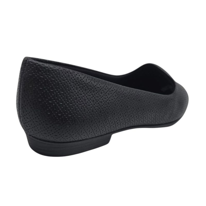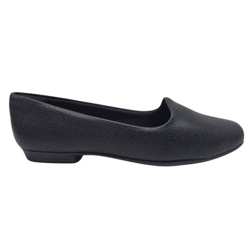 Descrição:Charmosa e atemporal, a Sapatilha Raquel Salto Baixo une elegância e praticidade para o ambiente de trabalho. Leve e flexível, ela oferece um acabamento superconfortável com espuma macia no calcanhar, forro suave e solado superaderente, garantindo conforto durante longos períodos de pé e complementando seu traje com sofisticação. INFORMAÇÕES TÉCNICAS: Cor: Preto Material: Sintético Altura do Salto: Salto Baixo (1,5 cm) Forro: Têxtil