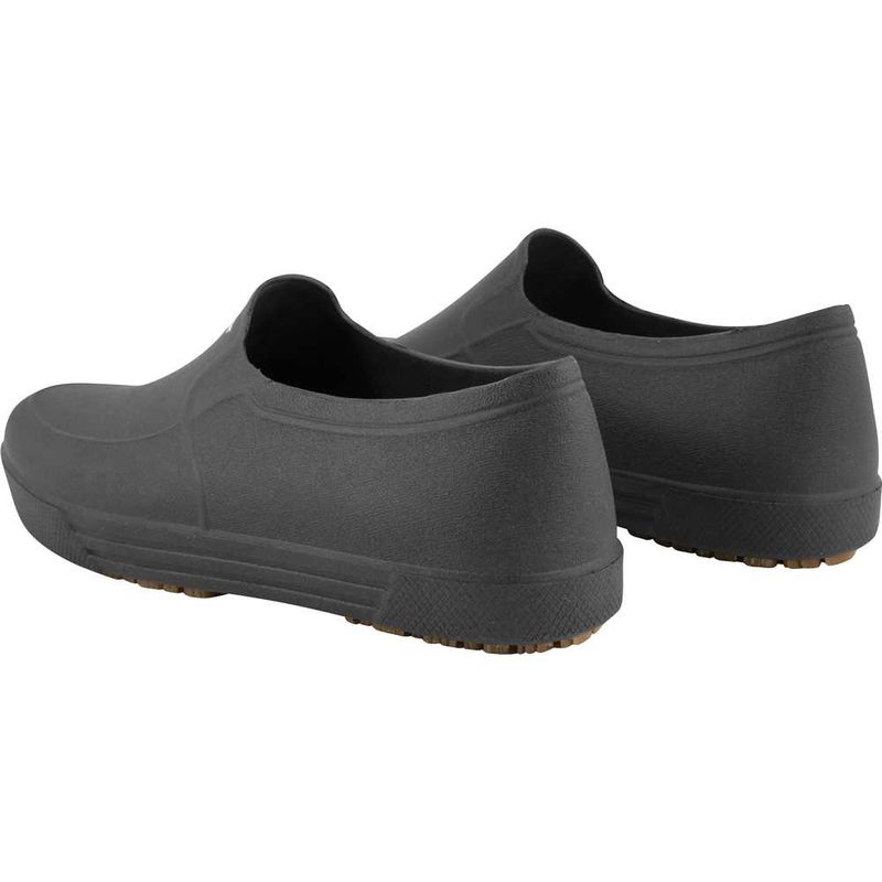 Marca: VonderConteúdo da embalagem:1 Par de sapatos.Garantia: Garantia legal: 90 diasDestaques e diferenciais:Sapato fechado na parte do calcanhar e na parte superior. Confeccionado em material polimérico e impermeável. Conta com absorvedor de energia na área do salto, palmilha interna, solado de borracha antiderrapante resistente ao óleo combustível, ao escorregamento em piso cerâmico com solução de detergente e piso de aço com solução de glicerol.Aplicações e dicas de uso:Indicado para a proteção dos pés do usuário contra riscos de natureza leve, agentes abrasivos e escoriantes e umidade proveniente de operações com uso de água. Não utilizar o sapato em operações contra incêndio e contra agentes provenientes de energia elétrica.Detalhes Técnicos:Modelo: Sapato impermeável Classic Material (tipo/composição): Polimérico (TPE) Número do sapato de segurança: N° 35 Material do solado do sapato de segurança: Borracha natural Tipo de solado: Antiderrapante Biqueira: Sem Fechamento: Total Acabamento interno (forração/forro) (tipo/composição): Sem forro Cor: Preto com solado bege Certificado de aprovação (CA): 44885 Massa aproximada (peso) (kg): 0.53 kg