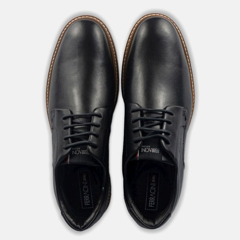 Sapato Ferracini Firenze Cincy - 3406.672 Preto - 37 - O Sapato Ferracini Firenze Cincy Preto 3406.672 reúne design derby com bico arredondado, cabedal em couro e solado em micro expandido, garantindo conforto, estabilidade e visual moderno. Versátil, acompanha rotinas de trabalho e produções casuais alinhadas com estilo contemporâneo. Características Gerais do Produto: • Marca: Ferracini • É Esportivo: Não • Esportes Relacionados: Não Informa • Estilo: Casual • Gênero: Masculino • Indicado Para: Dia a Dia • Tipo: Sapato • Tipo de Ajuste: Cadarços • Material: Couro • Material Do Solado: Micro Expandido • Material Interno: Couro • Palmilha: Forrada em Microfibra • Entre Sola: N/A Garantia: • Garantia contra defeitos de fabricação do fornecedor por 90 dias