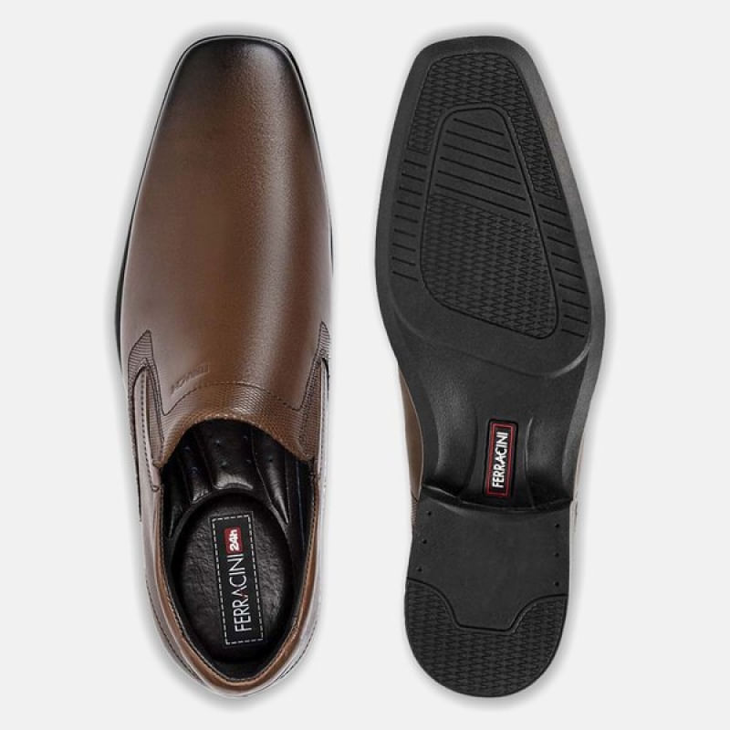 Sapato Ferracini Melnik Gold Plus Sem Cadarço - 5286.645 Marrom - 39 - O Sapato Ferracini Melnik Gold Plus Sem Cadarço 5286.645 combina bico quadrado, cabedal em couro e solado em borracha para oferecer calce fácil, estabilidade e visual social contemporâneo. Versátil, acompanha rotinas de trabalho e ocasiões especiais com conforto e elegância Características Gerais do Produto: • Marca: Ferracini • É Esportivo: Não • Esportes Relacionados: Não Informa • Estilo: Casual • Gênero: Masculino • Indicado Para: Dia a Dia • Tipo: Sapato • Tipo de Ajuste: Calce Facil • Material: Couro • Material Do Solado: Borracha • Material Interno: Sintético • Palmilha: P.U. • Entre Sola: N/A Garantia: • Garantia contra defeitos de fabricação do fornecedor por 90 dias