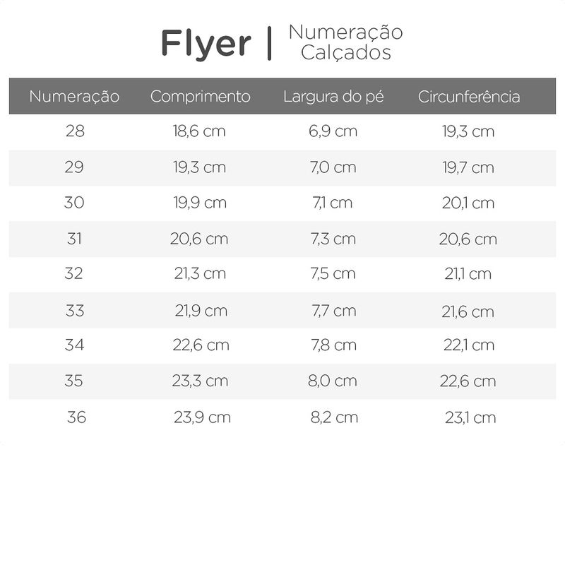 O Sapato Flyer foi pensado para ocasiões em que o estilo e o conforto são indispensáveis. Casual e perfeito para que o seu pequeno esteja sempre na moda. A linha Flyer oferece diversos modelos, cores e acabamentos, assim fica fácil encontrar o modelo que mais combina com o look do seu pequeno. Além disso, todos os nossos modelos são anatômicos, flexíveis, antiderrapantes e resistentes, garantindo muita segurança e um caminhar saudável para as nossas crianças. Antiderrapante - Solado em TR evita escorregões, mais segurança e estabilidade para os pequenos. Calce Fácil - Fechamentos que auxiliam na abertura do sapatinho, facilitando o calce nos pezinhos. Anatômico - Materiais macios e fofinhos, acomodando os pezinhos com muito conforto. Limpeza e Conservação: Evite usar substâncias abrasivas como álcool, detergentes ou solventes nos calçados. Nunca os mergulhe na água ou os deixe de molho ou lave na máquina. A secagem dos produtos deve ser feita à temperatura ambiente e na sombra, nunca no sol ou em máquinas. Características: Referência: 469210 Linha: Flyer Ocasião/Uso: Dia-a-dia Fechamento: Elastico Material: Sintético Solado: Borracha TR Palmilha: EVA Termoconformada