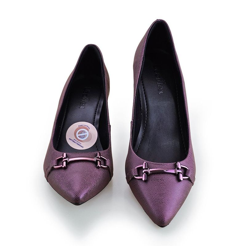 Um Scarpin para fugir do mesmo! Bico fino e salto bloco para conforto total! Esse modelo da Usaflex é confeccionado em couro com textura, super charmoso. O detalhe metalizado no bico traz modernidade e o salto grosso ainda mais conforto e segurança. Forro têxtil com tratamento antibacteriano para reduzir a chance de mau cheiro, palmilha com espuma para maior conforto e solado emborrachado. Altura aproximada do salto 6,5 cm Cabedal em couro Solado emborrachado Garantia: produto original Usaflex com garantia de fabrica contra defeito de fabricação.