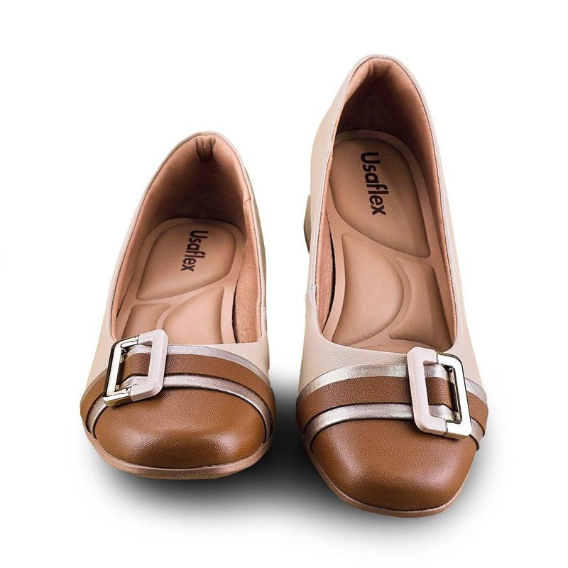 Um sapato baixo clássico, perfeito para o seu dia a dia! Esse modelo da Usaflex é confeccionado em couro liso e tem detalhe em outra cor no bico redondo com tiras douradas. Detalhe em fivela plástica com detalhe metalizado. Forro têxtil com tratamento antibacteriano para reduzir a chance de mau cheiro, palmilha anatômica com espuma e mais pontos de conforto e solado emborrachado. Altura aproximada do salto 4 cm Cabedal em couro Solado emborrachado Garantia: produto original Usaflex com garantia de fabrica contra defeito de fabricação.