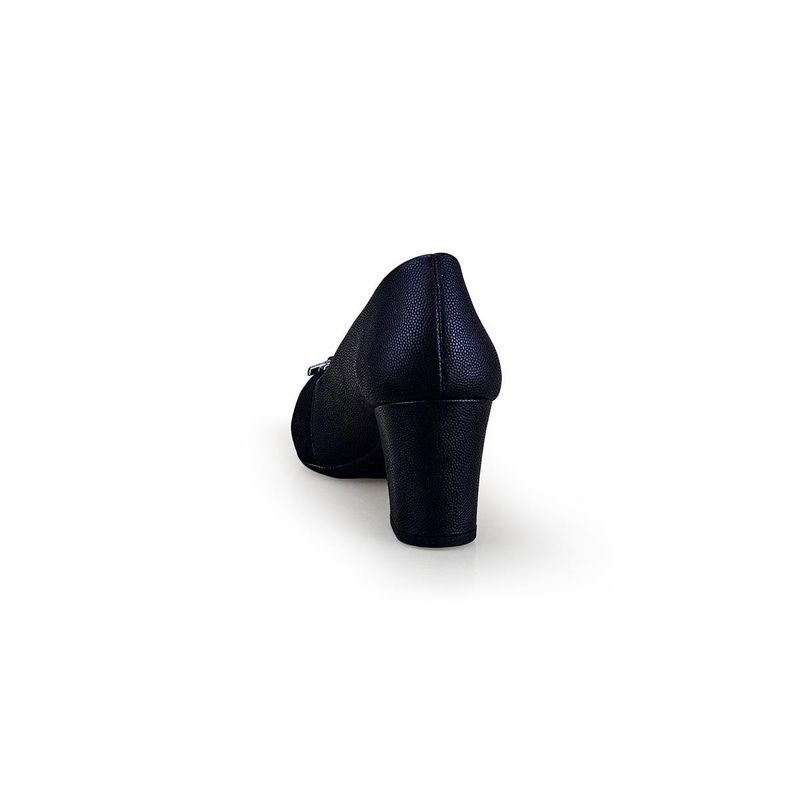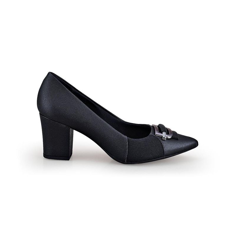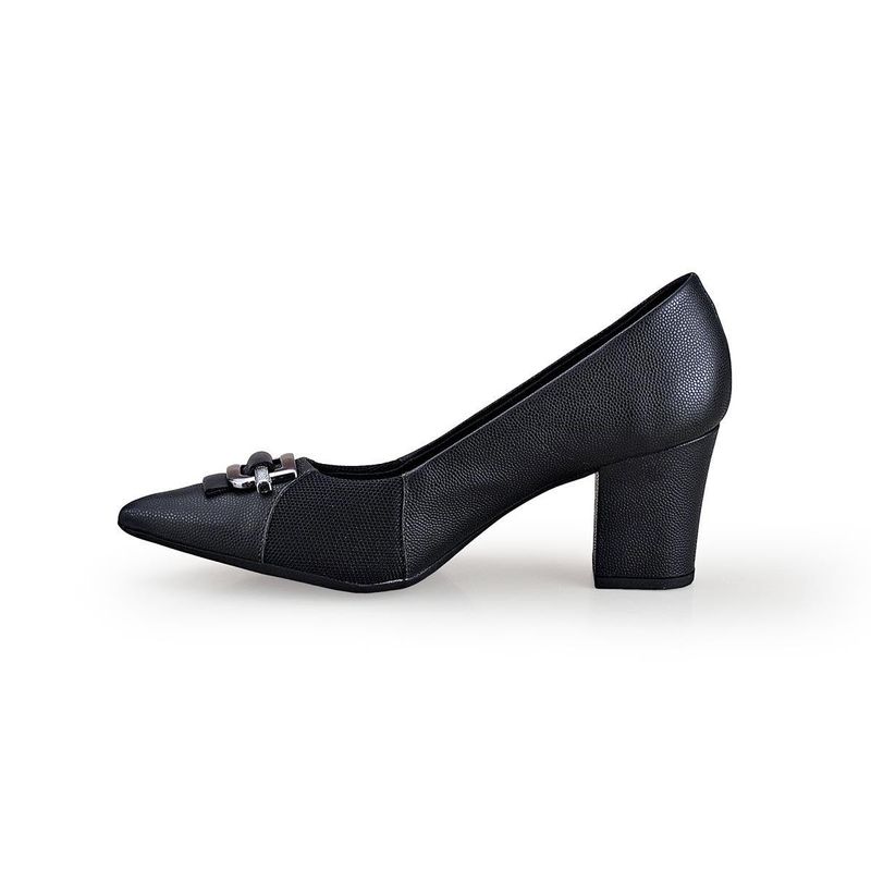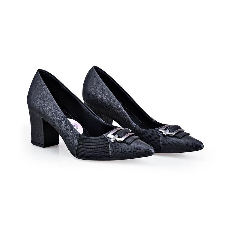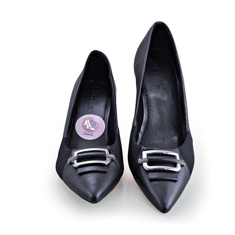 Um sapato social não precisa ser desconfortável. A Usaflex desenvolve tecnologias para o seu bem estar! Esse modelo de scarpin é confeccionado em couro texturizado e tem um tecido elástico e macio nas laterais, para proporcionar mais conforto para quem sofre com joanetes. O detalhe metalizado no bico traz modernidade e o salto grosso ainda mais conforto e segurança. Forro têxtil com tratamento antibacteriano para reduzir a chance de mau cheiro, palmilha com espuma para maior conforto e solado emborrachado. Altura aproximada do salto 6,5 cm Cabedal em couro com tecido protetor de joanetes Solado emborrachado Garantia: produto original Usaflex com garantia de fabrica contra defeito de fabricação.