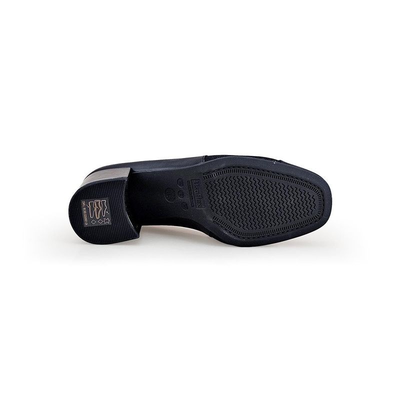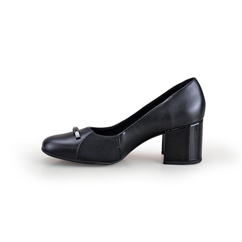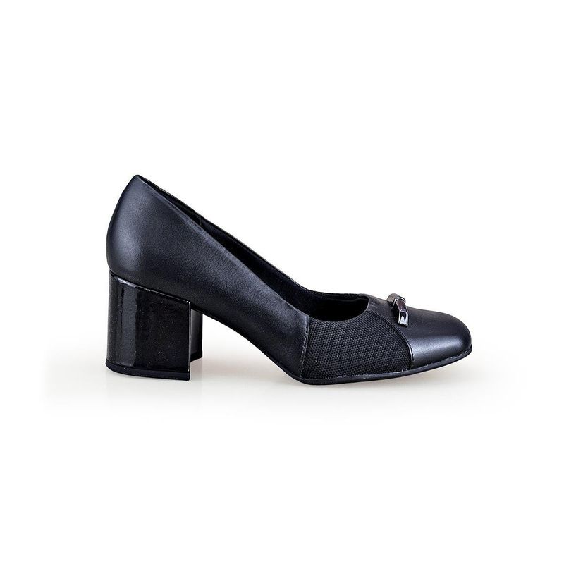 Um sapato de bico quadrado super confortável para o seu dia a dia ou para aquele vento especial. Esse modelo é confeccionado em couro liso e tem um tecido elástico e macio nas laterais, para proporcionar mais conforto para quem sofre com joanetes. O detalhe metalizado no bico traz modernidade e o salto grosso forrado em verniz, ainda mais conforto e segurança. Forro têxtil com tratamento antibacteriano para reduzir a chance de mau cheiro, palmilha com espuma para maior conforto e solado emborrachado. Altura aproximada do salto 6 cm Cabedal em couro com tecido protetor de joanetes Solado emborrachado Garantia: produto original Usaflex com garantia de fabrica contra defeito de fabricação.
