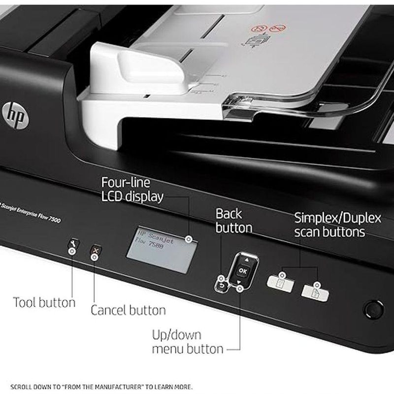 Scanner De Mesa Hp Scanjet Enterprise Flow 7500 Flatbed ScannerHP Scanjet Enterprise Flow 7500 Flatbed Scanner - PN: (L2725B)Obtenha uma digitalização rápida e excelentes resultados de imagem. Obtenha uma digitalização rápida e confiável — até 50 ppm/100 ipm com 200 dpi em preto e branco, tons de cinza e coresDigitalize até 100 páginas por vez, e escolha entre uma variedade de tamanhos — até 86 cm de comprimento. Digitalize livros, livros, notas, cartões e muito mais usando o scanner de tamanho ofício de leite.Conte com a confiabilidade da HP e economize tempo valioso. Digitalize com confiança — a tecnologia HP EveryPage mantém os projetos de digitalização funcionando sem problemas.Conte com a operação durante todo o dia — digitalize até 3000 páginas por dia. Monitore facilmente as especificações do sistema e o status do seu scanner usando o HP Web Jetadmin.Integra-se e melhore a gestão de documentos. Simplifique as tarefas de digitalização com o software HP Smart Document Scan e aprimore automaticamente as imagens para digitalizações ideais.Integre perfeitamente este scanner aos fluxos de trabalho existentes, usando drivers completos.Otimize digitalizações com recursos OCR integrados e salve em uma variedade de formatos de arquivo.Garantia limitada de hardware de um ano; 24 horas, 7 dias por semana Suporte webTecnologia de conectividade: USBConteúdo da caixaScanner digital de mesa HP Scanjet Enterprise 7500 com alimentador automático de documentos (ADF); Cabo USB de alta velocidade; adaptador de energia com cabo de alimentação CD-ROMs com software (software de digitalização de documentos HP Smart, Nuance PaperPort, I.R.I.S Readiris Pro OCR, Kofax VirtualReScan Pro, driver HP TWAIN, driver EMC ISIS); Guia de suporte e instalação;