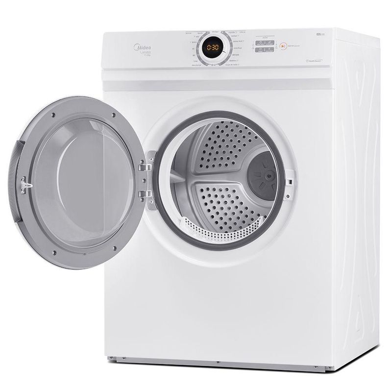Secadora Midea Healtguard 11,2kg Branco 127V MD100A112As vezes, em meio a sua rotina, fica difícil de cuidar das suas roupas como deveria, certo? Pensando nisso a Midea traz a você a Secadora Healthguard. A Healthguard proporciona um cuidado a mais as suas roupas, sua tecnologia elimina germes e bactérias, muito mais higiene e segurança para você e toda a sua família. Trazendo inovação, essa secadora conta com painel touch e o botão lunar que incorpora o painel led e a seleção das funções no mesmo lugar. Alta performance que oferece mais de 15 programas e 2 funções para facilitar seu dia a dia. Conta com tecnologia SmartSec que ajusta automaticamente o tempo de secagem das suas roupas conforme a necessidade. O programa Passa Fácil garante o ponto ideal de umidade nas peças para auxiliar na passagem das peças. Conta também com programa desodorizar, que remove odores desagradáveis, programa rápido, que ideal para secar uma pequena quantidade de peças rapidamente e também função antirrugas que se acionado após a secagem, previne o aparecimento de rugas nas roupas. Especificações Técnicas:- Marca: Midea Carrier- Modelo: Healtguard- Código: MD100A112/WW-01 - Voltagem: - Tipo: Automática- Cor da Cabine: Branca- Cor da Porta: Branco- Cor Interna: Inox- Cor do Display: Laranja- Capacidade de Secagem, Roupa Centrifugada: 11,2kg- Capacidade de Secagem, Massa Máxima de Material Têxtil Seco*: 10,1kg- Potência: 1.550W- Frequência: 60Hz- Tipo de Tomada: 20A- Material Interno (cesto): Aço inox- Material Externo: Plástico / Aço / Inox- Empilhamento: 4- Wi-fi: Não- Compatível com o Aplicativo Midea: Não- Compatível com Alexa e Google: Não- Acesso ao Cesto: Frontal- Programas de Secagem (quantidade): 15- Programas de Secagem: Rápido, mix, jeans, 45’, 90’, timer, desodorizar, algodão, normal, passa fácil, esterilizar, delicado, sintético, roupa de bebê e lã.- Funções (quantidade): 2- Funções: Antirrugas e Adiar Início- Níveis de Intensidade: 3- Display: Digital- Pés Reguláveis: Sim- Filtro de Fiapos: Sim- Painel com Aviso de Erro: Sim- Timer: De 10 em 10 minutos até 2:00- Adiar Início: Sim (24hras)- Função Silenciar: Sim- Função Desodorizar: Sim- Função Travar Painel: Sim- Filtro: Sim- Itens Inclusos na Embalagem: Secadora e manual do usuário- Medidas do Produto (LxAxP): 59,5 x 84 x 55,5 cm- Medidas do Produto Embalado (LxAxP): 66,5 x 89 x 57,5 cm- Peso Líquido: 33kg- Peso Bruto: 36kg- Garantia: 24 meses