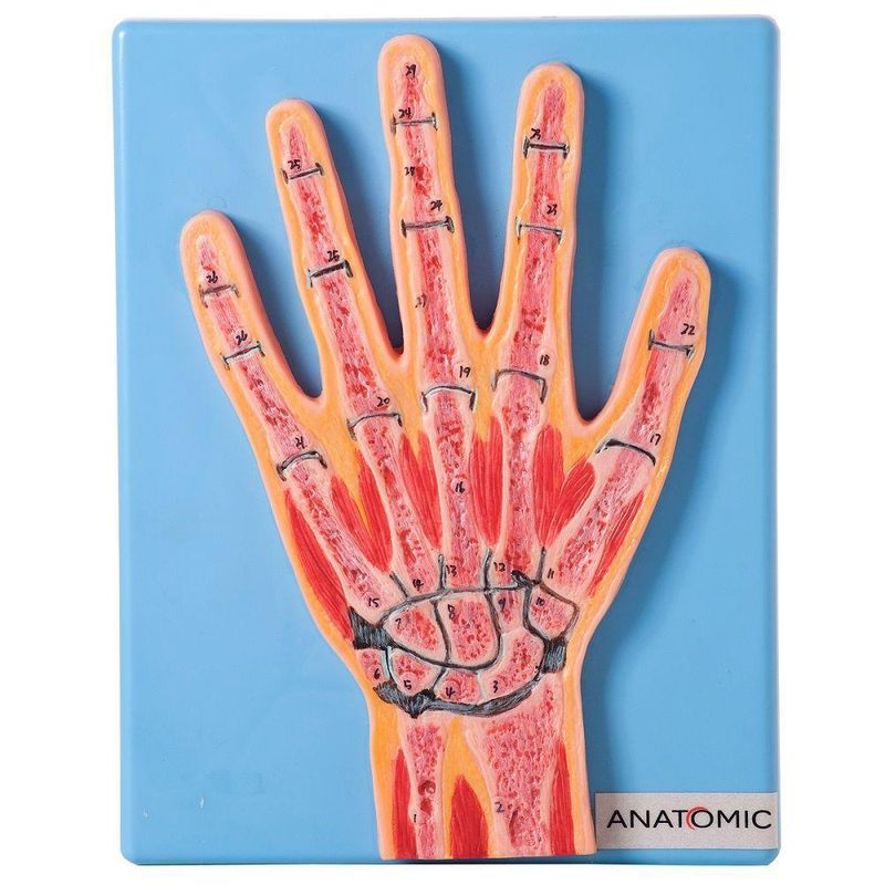 Secção Mediana da Articulação da Mão Anatomia Modelo de Secção Mediana da Mão. Fabricado em PVC especial, que garante maior durabilidade. Possui 29 posições numeradas para estudo: 1. Ulna, 2. Radio, 3. Osso escafoide, 4. Osso semilunar, 5. Osso piramidal, 6. Osso pisiforme, 7. Osso hamato, 8. Osso Capitato, 9. Trapezoide m, 10. Trapézio, 11-15 Articulação Carpometacarpiana, 16. Terceiro metacarpo, 17-2.1 Articulação metacarpofalângica, 22-26. Articulação interfalângicas, 27. Falange proxima, l28. Falange media, l29. Falange Distal, Montado em base plástica. Acompanha manual em português. Embalagem: Comnto x Largura x Altura:26 Cm x 22 cm x 21 cm Peso:0,68 Kg Marca :ANATOMIC -Referência :TZJ-0162-Z Garantia :1 Ano após o do produto