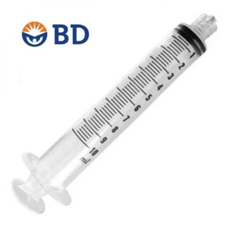 Seringa 10ml BD LUER LOCK sem agulhaSeringas BD Plastipak™Seringa descartável e estéril de qualidade e precisão BDEspecificação:*Seringa 10ml.*Bico Luer Lock (Bico Rosca).*Sem agulha.Benefícios / Vantangens:*Confeccionadas em polipropileno especialmento desenvolvido para as seringas BD Plastipak™, propocionando maior transparência.*Siliconização interna que garante suavidade no deslize e controle preciso na aspiração e aplicação de medicamentos.*Cilindro com anel de retenção que evita perda do medicamento durante a aspiração.*Códigos EAN nas embalagens unitárias e nas caixas das seringas.Qualidade e Segurança, agora com código de barras:*Identificação automática e sem erros do item.*Registro automático da movimentação de materiais.*Melhora controle de estoque.*Agiliza o trabalho na farmácia hospitalar.*Verificação automática da validade.