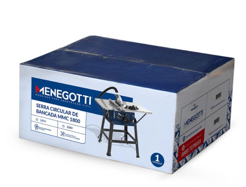 Serra Circular de Bancada MMC 1800Equipamento projetado para realizar cortes transversais, longitudinais e de ângulo em diversos tipos de madeira. Sempre respeitando os limites de tamanho da máquina. Oferece segurança, durabilidade, facilidade na sua manutenção e possui excelente performance, desempenho e baixo consumo de energia. Principais características: Régua para regulagem da distância entre a serra e o encosto de corte;Trava para o encosto de corte;Encosto transversal para regulagem de corte reto ou em ângulo de até 45°.Acompanha:01 Bastão auxiliar para empurrar madeira;01 Mangueira de sucção para coletar resíduos;02 Chaves estrelas para montagem e desmontagem da máquina;01 Disco para cortar madeira com diâmetro de 10″ e 24 dentes ( espessura 2,8mm);Trilho guia e proteção. Performance S1 1800 WModelo de Operação 2000W S6 25%Velocidade sem Carga 5000 min-1Dimensões do Disco 254 x 30 x 2,8 mmNúmero de dentes 24Espessura da Faca Separadora 2 mmTamanho da Mesa C x L x A 563 x 583 x 28 mmAltura Máxima de Corte em 90° 85 mmAltura Máxima de Corte em 45° 65 mmAjuste de Altura 0 - 85 mmÂngulo da Lâmina da Serra 0 - 45°Tubo de Sucção 35 mmPeso 19 kgMotor CA 220V 60Hz