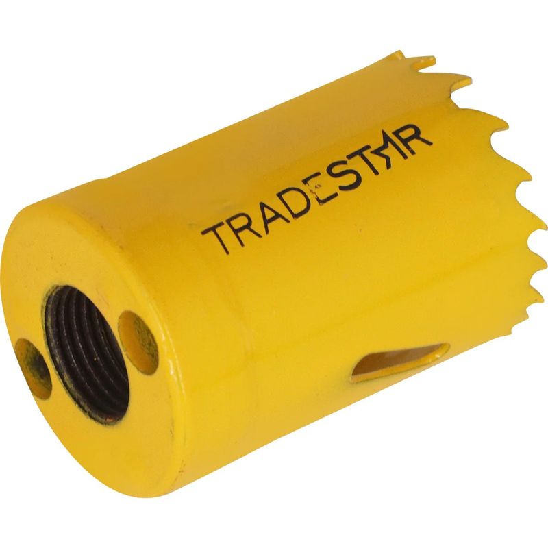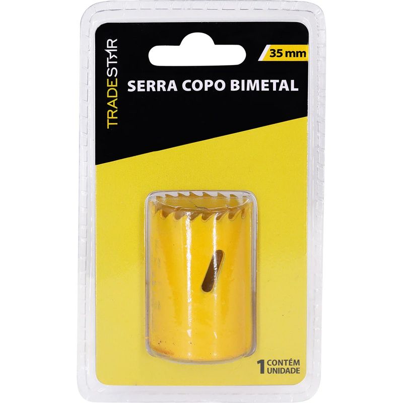 Serra Copo 35 mm Aço Rápidor Bimetal TradestarA Serra Copo Bimetal Tradestar 35 mm em Aço Rápido é uma ferramenta versátil e indispensável para profissionais que atuam com instalações elétricas, hidráulicas, metalúrgicas ou marcenaria. Desenvolvida para garantir cortes precisos e eficientes, sua composição bimetálica oferece uma combinação ideal de resistência e durabilidade, tornando-a adequada para perfurações em diversos materiais com alta performance.Com diâmetro de 35 mm, este modelo é especialmente indicado para furos de passagem, instalações de conduítes, caixas elétricas, passagens de tubulações e sistemas de ventilação, atendendo tanto demandas residenciais quanto industriais. A construção bimetálica – que combina aço rápido (HSS) nos dentes e corpo em aço carbono – proporciona alta resistência ao calor e à abrasão, mantendo a afiação por muito mais tempo mesmo em usos contínuos.A geometria dos dentes, com passo variável, permite cortes mais suaves, reduzindo o esforço de perfuração e evitando travamentos durante o uso. Além disso, essa característica melhora o desempenho em materiais de diferentes densidades, como aço, alumínio, PVC, madeira, compensado e plásticos rígidos.Especificações- Diâmetro: 35 mm- Material: Aço Rápido (HSS) Bimetálico- Tipo de dente: Passo variável- Aplicações: Metal / Madeira / Alumínio / Plástico- Compatibilidade: Mandris e adaptadores para serra copo padrão- Segmentos: Construção Civil / Elétrica / Marcenaria / Metal MecânicaItens inclusos- 01 Serra Copo Tradestar 35 mm Bimetal em Aço RápidoGarantia- 03 meses com o Fabricante