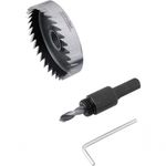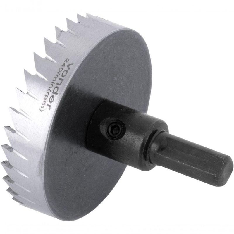 Serra Copo Ar 60mm Para Inox VonderMarca: VonderConteúdo da embalagem:1 Serra copo. Acompanha: 1 haste, 1 broca piloto de 6 mm, 1 chave allen de 2,5 mm.Destaques e diferenciais:Produzida em aço rápido, que proporciona maior resistência e durabilidade. Permite a realização de furos com grandes diâmetros em tempo reduzido.Aplicações e dicas de uso:Indicada para fazer furações (corte a seco ou refrigerado) em chapas metálicas de até 2 mm de espessura. Haste triangular com 10 mm. Rotação máxima (rpm): 240/min.Detalhes TécnicosDiâmetro: 60 mmGarantia - E (CDC):Garantia legal: 90 dias NA
