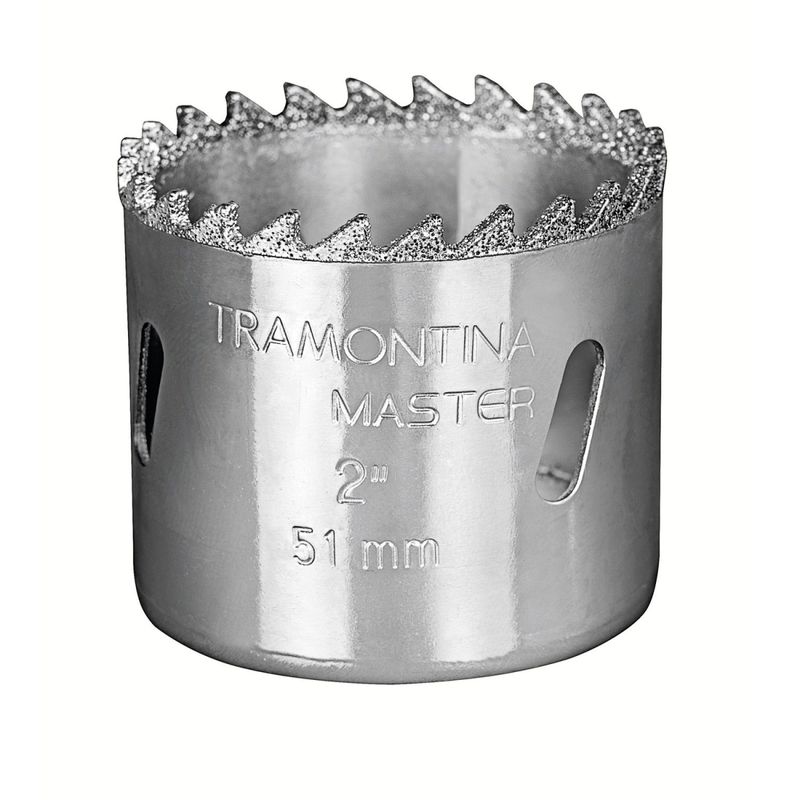 Serra Copo Diamantada 64 mm 2.1/2" Tramontina com Dente de Metal Duro e Aço Especial Cromado Tramontina - Serra Copo Diamantada 64 mm 2.1/2" Tramontina com Dente de Metal Duro e Aço Especial Cromado A Serra Copo Diamantada 64 mm 2.1/2 polegadas Tramontina com Dente de Metal Duro e Aço Especial Cromado é utilizada em trabalhos de perfuração. Indicada para telhas, tijolos, cerâmicas, azulejos e outros materiais, ela traz toda a qualidade e alto desempenho das ferramentas da linha Tramontina Master. Possui 64 mm e 2.1/2 polegadas e é produzida em aço especial com dentes revestidos com carbonetos de tungstênio. Além disso, é testada sob rÃgido controle de qualidade que garante alta performance no corte. Corpo em aço especial. Dentes revestidos com carbonetos de tungstênio. Acabamento cromado. Rosca 5/8" - 18G.As ferramentas são submetidas a testes de aplicação prática para garantir sua resistência mecânica em uso intenso. Indicada para cortar telhas, tijolos, cerâmicas, azulejos e outros materiais. As ferramentas são produzidas e testadas conforme normas especÃficas. Cuidados com o produto Use óculos, luvas e outros equipamentos de proteção de acordo com a tarefa a ser executada.Mantenha ferramentas de corte longe do alcance de crianças.Mantenha o fio de corte protegido, pois ele pode ferir o usuário.Não exceda a velocidade máxima indicada para cada tamanho de serra copo.Lubrifique a ferramenta sempre que possÃvel durante o corte.Armazene em local limpo e seco. Garantia Garantia total contra vÃcios ou defeitos de fabricação. - - Características Gerais do Produto: Garantia: • 3 Meses