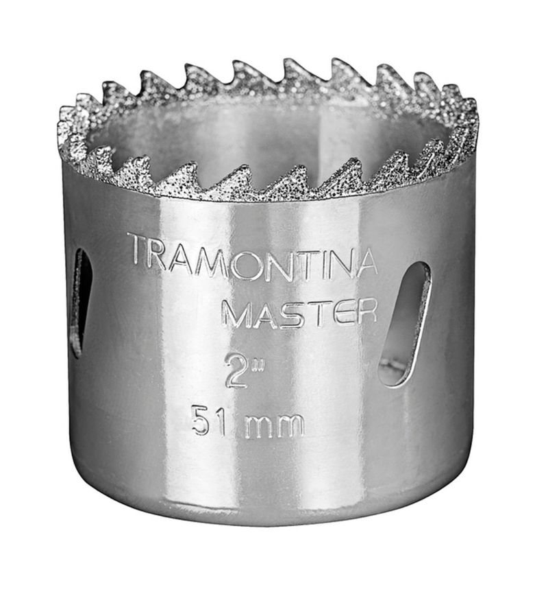 Serra Copo Diamantada 89mm 3.1/2" Tramontina Dente Metal Duro Aço Especial Cromado Tramontina - Para um corte com alta performance, a Serra Copo Diamantada 89 mm 3.1/2 polegadas Tramontina com Dente de Metal Duro e Aço Especial Cromado é a escolha certa. Submetida a rígido controle de qualidade, ela apresenta alto desempenho e resistência. É indicada para perfuração em telhas, tijolos, cerâmicas, azulejos e outros materiais. Possui 89 mm e 3.1/2 polegadas. É produzida em aço especial com dentes revestidos com carbonetos de tungstênio. Orientações Corpo em aço especial. Dentes revestidos com carbonetos de tungstênio. Acabamento cromado. Rosca 5/8" - 18G.As ferramentas são submetidas a testes de aplicação prática para garantir sua resistência mecânica em uso intenso. Indicada para cortar telhas, tijolos, cerâmicas, azulejos e outros materiais. As ferramentas são produzidas e testadas conforme normas específicas. Observações Use óculos, luvas e outros equipamentos de proteção de acordo com a tarefa a ser executada.Mantenha ferramentas de corte longe do alcance de crianças.Mantenha o fio de corte protegido, pois ele pode ferir o usuário.Não exceda a velocidade máxima indicada para cada tamanho de serra copo.Lubrifique a ferramenta sempre que possível durante o corte.Armazene em local limpo e seco. Características Gerais EAN13 7891114105339 DUN14 17891114105336 NCM 8202.99.90 0,3600 kg. 0,3600 kg. Metragem 0,001365 m³. 195x 140x 50 mm. 89x 89x 44 mm. Dimensão Extra A 89,0 mm. Dimensão Extra B 44,0 mm. Características Gerais do Produto: Garantia: • 1 Ano
