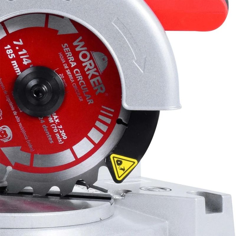 Código do Fornecedor: 981907 Marca: Worker Conteúdo da embalagem: 1 Serra Esquadria 7.1/4'' 850W 220V Worker A serra esquadria Worker 7.1/4" é uma ferramenta elétrica com lâmina de 20mm, capaz de cortar madeira e derivados em ângulos precisos. Com uma potência de 850W e velocidade de 5000rpm, é indicada para trabalhos de marcenaria, carpintaria e construção civil. Sua voltagem é de 220V, o que a torna adequada para uso doméstico e em pequenas oficinas. Além disso, sua base é ajustável para cortes em ângulo de até 45 graus. É uma opção eficiente e versátil para quem busca praticidade e qualidade em cortes precisos. Especificações: Indicada somente para cortar madeira e derivadosBase giratória para cortes em ângulo de 45º para ambos os ladosPossui morsa de apoio lateralBraço (cabeça de corte) com manopla para regulagem de inclinação de 45º para a esquerdaCabo com revestimento emborrachadoProtetor de lâminaMorsa e apoios laterais que facilitam o corte em peças de maior comprimento Características: Tensão: 220VPotência: 850WFrequência: 50hz/60hzRotação: 5.000 rpmDiâmetro da serra: 7.1/4” – 185mmFuro: 20mmÂngulo de inclinação: 45°Norma: ABNT NBR IEC 60745-1; ABNT NBR IEC 60745-2-10Peso: 5,42 kg Capacidade de corte:Base/Cabeça de corte – Largura x Altura: 0º/90º - 85mm x 45mm45º/90º - 60mm x 45mm0º/45º - 85mm x 30mm45º/45º - 60mm x 30mm Acompanha:1 coletor de pó1 lâmina de serra circular 7.1/4” - 185mm1 chave allen Garantia: 6 meses