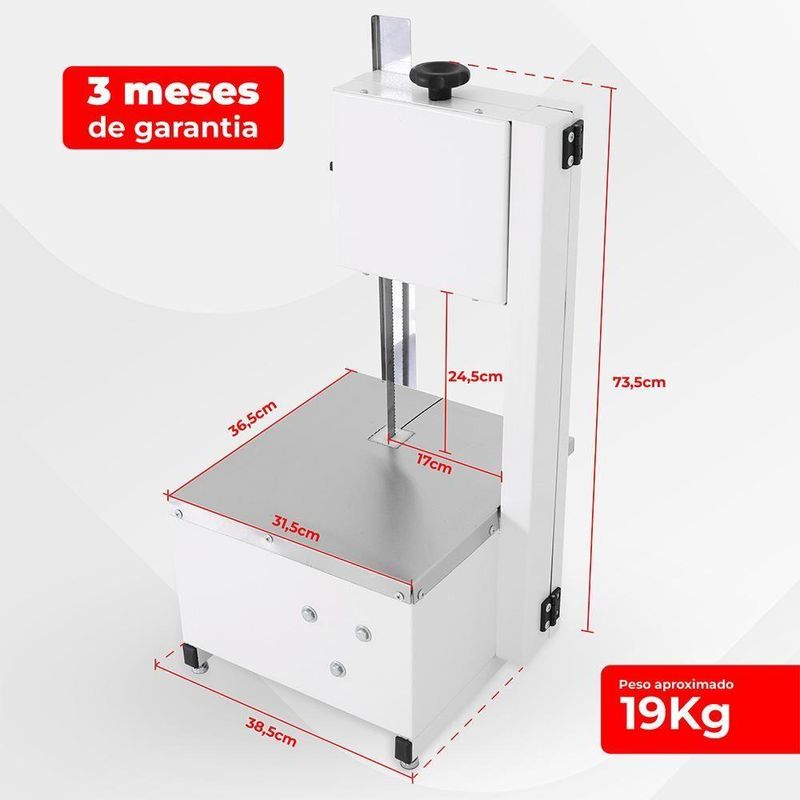 Serra Fita Residencial Branca Motor 1/2 Cv 110-117v 110Máquina Serra Fita de BancadaIdeal para residências, açougues, mercearias e casas de carne que necessitam de cortes rápidos, padronizados e com excelente acabamento em carnes, ossos e peixes congelados. Sua estrutura robusta garante alta durabilidade e resistência, além de facilitar a higienização, contribuindo para um ambiente de trabalho seguro e dentro dos padrões de limpeza exigidos.Equipada com motor monofásico de 50cv, esta serra fita oferece potência e estabilidade para operação contínua ao longo do dia, reduzindo o esforço do operador e aumentando significativamente a produtividade. A altura de corte de 14,6 cm e a largura de 17 cm permitem trabalhar com diferentes tipos e tamanhos de peças, garantindo cortes firmes, precisos e uniformes.Compacta e funcional, ocupa pouco espaço na bancada e conta com mesa em aço inox, que proporciona maior estabilidade e resistência durante o uso. É a escolha ideal para quem busca uma serra fita confiável, eficiente e com excelente custo-benefício, pronta para atender às demandas do uso profissional ou residencial intenso.DIMENSÕES DA SERRA RESIDENCIALAltura 73,5 cmLargura 38,5 cmProfundidade 36,5 cmPeso aproximado 19 kgÁREA DE CORTEProfundidade da área de corte 36,5Largura da área de corte 31,5cmAltura total do pescoço até 24,5cmDistância do pescoço até na lâmina 17cmMOTOR1/2 CV127 - 110 - 220v50HZ / 60HZEspecificações técnicas.Corpo da serra revestido com pintura epóxi;Lâmina 1,46m;Mesa fixa;Estruturas resistentes;Caixas em aço carbono com pintura epóxi;Engrenagem interna (industrial);Rolamentos blindados;Botão de acionamento antichoque;Sistema de regulagem da polia reforçado;Polia superior e inferior em ferro fundido;Mesa e proteção da lâmina em aço inox;Proteção de lâmina de fácil regulagem;Fácil remoção para higienização.Peso do Produto: 19kg | Tensão Elétrica: 220 e 127 | Produto: Serra fita | Potência: 50hz | Alimentação: Eletrica | Marca: Chama Voltagem: 110