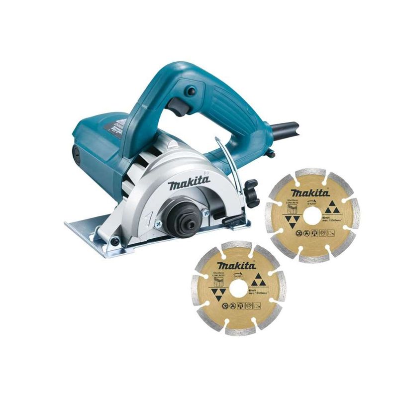 Serra Mármore 110 mm, 1.300 W, 127 V~, sem kit Refrigeração, com 2 Discos, 4100nh3zx2 Makita 127 V~ - Conteúdo da embalagem: 1 Serra mármore. Acompanha: 2 chaves para troca do disco e 2 discos diamantados segmentados. Aplicação: Indicada para cortar alvenaria, ardósia, azulejo, cerâmica, concreto, fibra de vidro, fibrocimento, granito, madeira, mármore, metal, porcelanato, PVC, tijolo maciço e vidro (sempre utilizando o disco adequado). Destaques: Possui dupla isolação e interruptor com dispositivo de segurança. Para acionar o equipamento é necessário destravar o interruptor através de um botão, evitando acionamentos involuntários e proporcionando maior segurança ao operador. Conta ainda com regulagem de profundidade que confere cortes mais precisos e com melhor acabamento. Possui a extremidade traseira plana, auxiliando na substituição do disco diamantado, além de sistema de ventilação otimizado e ranhuras na base para evitar o acúmulo de pó, facilitando o deslizamento da máquina. Garantia - E (CDC): Garantia legal: 90 dias + Garantia contratual: 9 meses Referência: 4100NH3ZX2-127V Modelo: 4100NH3ZX2 Diâmetro do disco da serra mármore: 4.3/8" - 110 mm Potência: 1.300 W Ãngulo de inclinação da serra: Base fixa Capacidade de corte 90º: 32,5 mm Diâmetro do eixo da serra mármore: 20 mm Incerteza da aceleração transmitida nas mãos - braços do operador - k: 1,5 m/s² Aceleração transmitida nas mãos - braços do operador - ah: 5 m/s² Acessórios/peças que acompanham o produto: 1 Chave, 1 chave allen e 2 discos diamantados Frequência: 50 Hz / 60 Hz Massa aproximada (peso): 2,9 kg Segue norma: ABNT NBR IEC 60745-1 e ABNT NBR 15910 Rotação - rpm: 13.800/min Tensão (V): 127 V~ Destaques Comercial: Ferramenta com dupla isolação e trava de segurança no interruptor. Possui regulagem de profundidade, ventilação otimizada e base com ranhuras que reduzem pó e melhoram o deslizamento. Aplicação Comercial: Corta diversos materiais como alvenaria, cerâmica, concreto, granito, madeira, metal e vidro, conforme o disco adequado. Características Gerais do Produto: Garantia: • 3 Meses