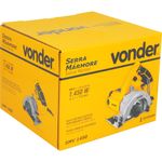 Marca: VonderConteúdo da Embalagem:1 Serra mármore. Acompanha: 2 chaves Destaques e diferenciais:Possui base com regulagem de profundidade e ângulo (até 45°) que confere cortes mais precisos e melhor acabamento. Conta com dispositivo de segurança no interruptor, evitando acionamentos involuntários, e motor com dupla isolação, garantindo maior segurança ao operador. Conta ainda com cabo ergonômico que proporciona maior conforto para o operador.Aplicações e dicas de uso:Indicada para uso na construção civil para cortar mármore, granito, concreto, alvenaria, telha, tijolo, ardósia, pedras em geral, madeira, entre outros, utilizando disco de corte apropriado para cada material. Para ligar a ferramenta, realize os seguintes passos: pressione o botão trava do interruptor e, em seguida, com o botão ainda pressionado, aperte o interruptor de acionamento. Para desligá-la, basta soltar o interruptor de acionamento, conforme norma. Discos indicados: disco diamantado e disco para madeira com revestimento de carboneto de tungstênio. Discos não indicados: disco de corte abrasivo, lâmina de serra circular de aço carbono, lâmina de serra circular de aço carbono com dentes de metal duro/vídea, entre outros diferentes dos discos indicados.Características Técnicas:Diâmetro do disco da serra mármore: 4.1/2" - 115 mm Potência (W): 1.450 W Tensão (V): 220 V~