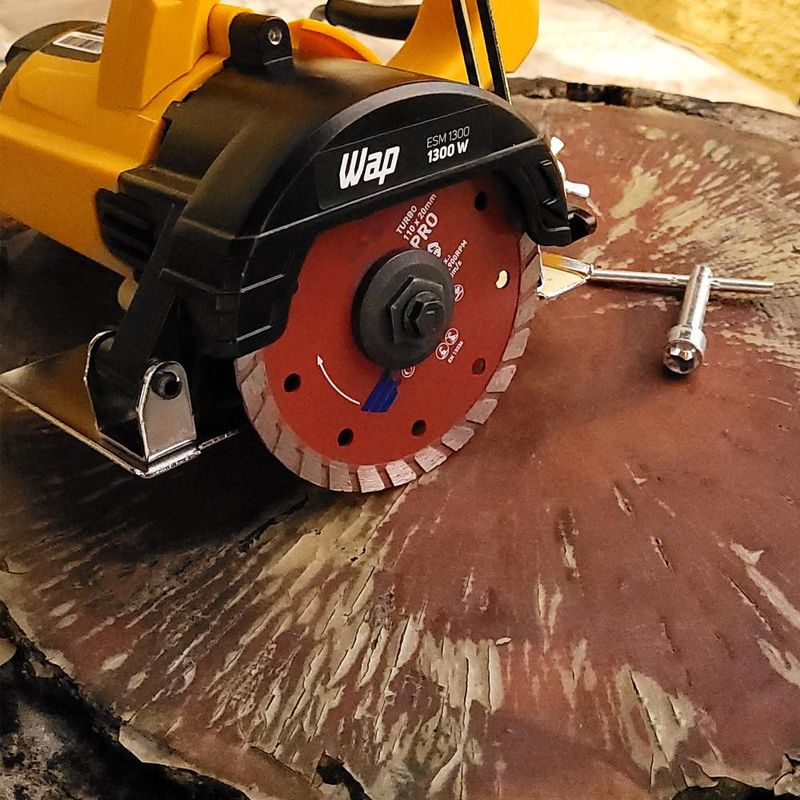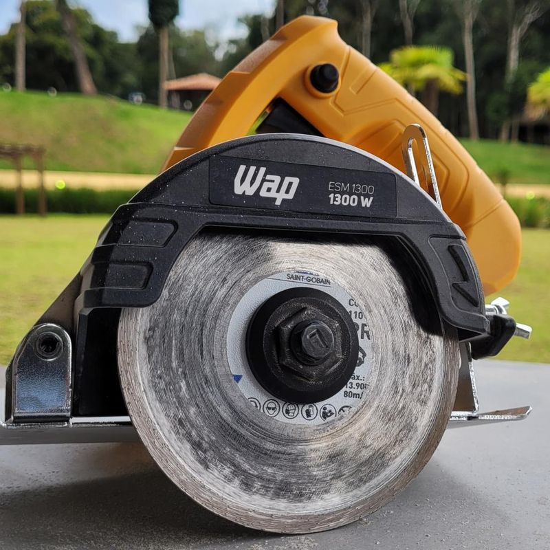 Na hora de realizar cortes em diferentes tipos de pedras ornamentais, tijolos, telhas, pisos, cerâmica e blocos de concreto, a solução está na Serra Mármore WAP ESM1300. Esta ferramenta da linha WAP Ferramentas opera com um motor de 1300W, que oferece toda a potência para realizar cortes retos com precisão e eficiência.Possui botão de trava para trabalhos contínuos, que elimina a necessidade de ficar pressionando o tempo todo o interruptor de acionamento do motor. Ela permite regulagem de altura, para ajustar a profundidade do corte sem o uso de ferramentas.A Serra Mármore WAP ESM1300 é robusta e durável. Possui base de apoio em metal e interruptor isolado, protegido do pó, o que aumenta a proteção do equipamento e garante a segurança do operador. Ela vem com sistema rápido de trocas de escovas de carvão.Esta é uma solução profissional da linha WAP Ferramentas, 100% rolamentada, com robustez e precisão de sobra para realizar cortes retos em pedras, telhas, cerâmica, azulejos, pisos e outros tipos de materiais.E para completar vem com a garantia de 1 ano assinada pela marca WAP!DADOS TÉCNICOS:COR: Amarelo com PretoPOTÊNCIA ELÉTRICA: 1300 WTENSÃO: 127V ou 220V (Escolher no momento da compra)FREQUÊNCIA: 60 HzMOTOR: UniversalROTAÇÕES: 12.000 rpm (min-1)TORQUE: 1,6 NmCLASSE DE PROTEÇÃO: IIPROFUNDIDADE DE CORTE (Corte Reto): 90° - 34mmDIÂMETRO DO DISCO DE CORTE: 4.3/8" - 110mm (Não Acompanha Disco de Corte)CABO ELÉTRICO: 2 metrosREGULAGEM DE ALTURA: SimSISTEMA RÁPIDO DE TROCA DE ESCOVA DE CARVÃO: SimBOTÃO DE TRABALHO CONTÍNUO: SimPESO LÍQUIDO: 2,6 KgPESO BRUTO: 2,9 KgCERTIFICADO INMETRO: -CUBAGEM: 0,0091 m³EMPILHAMENTO MÁXIMO: 4DIMENSÕES DO PRODUTO (CxLxA): 22 x 21,5 x 17,5 cmDIMENSÕES DA EMBALAGEM (CxLxA): 22,5 x 22 x 18,5 cmGARANTIA: 01 ANO (3 meses de garantia legal e mais 9 meses de garantia especial concedida pelo fabricante)CONTEÚDO DA EMBALAGEM: Serra Mármore ESM1300 + Acessórios + Manual de Instruções.
