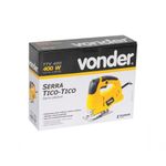 Serra Tico Tico Vonder Ttv 400 127vInformações do Produto Serra Tico Tico TTV 400 127 V~ VONDER - 60.01.400.127 Indicada para madeiras, metais, plásticos, entre outros, utilizando a lâmina apropriada. Possui cabo com revestimento emborrachado, conferindo maior conforto no manuseio, e dupla isolação, proporcionando mais segurança ao operador. Informações Técnicas Potência (W) 400 Capacidade de corte em aço 90º 6 mm Capacidade de corte em alumínio 90º 10 mm Capacidade de corte em madeira 90° 55 mm Tipo de encaixe da lâmina da serra tico-tico Tipo U e tipo T Ângulo de inclinação da base 45º Tipo de velocidade Fixa Número de golpes por minuto 3.000 gpm Segue norma ABNT NBR IEC 60745-1 e ABNT NBR IEC 60745-2-11 Tensão (V) 127 V~ Frequência (Hz) 60 Hz Massa aproximada 1,7 kg Garantia - E (CDC) Garantia legal 90 dias + Garantia contratual: 9 meses Conteúdo da Embalagem - 1 Serra tico-tico; - 1 Lâmina 50 mm para madeira encaixe tipo T ; - 1 Chave allen 3 mm.Informações do Produto Serra Tico Tico TTV 400 127 V~ VONDER - 60.01.400.127 Indicada para madeiras, metais, plásticos, entre outros, utilizando a lâmina apropriada. Possui cabo com revestimento emborrachado, conferindo maior conforto no manuseio, e dupla isolação, proporcionando mais segurança ao operador. Informações Técnicas Potência (W) 400 Capacidade de corte em aço 90º 6 mm Capacidade de corte em alumínio 90º 10 mm Capacidade de corte em madeira 90° 55 mm Tipo de encaixe da lâmina da serra tico-tico Tipo U e tipo T Ângulo de inclinação da base 45º Tipo de velocidade Fixa Número de golpes por minuto 3.000 gpm Segue norma ABNT NBR IEC 60745-1 e ABNT NBR IEC 60745-2-11 Tensão (V) 127 V~ Frequência (Hz) 60 Hz Massa aproximada 1,7 kg Garantia - E (CDC) Garantia legal 90 dias + Garantia contratual: 9 meses Conteúdo da Embalagem - 1 Serra tico-tico; - 1 Lâmina 50 mm para madeira encaixe tipo T ; - 1 Chave allen 3 mm.