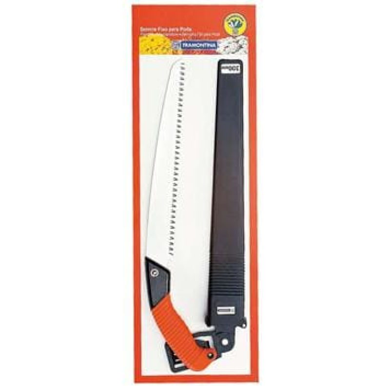 O serrote é próprio para poda em jardins e como auxiliar nas tarefas de camping. A lâmina feita em aço carbono, é flexível e de alta durabilidade. O formato especial da lâmina, com a linha de corte mais espessa que o dorso, reduz o atrito da peça com a madeira, proporcionando um corte mais fácil e suave. O perfil dos detes, especialmente projetados para cortar nos dois sentidos de movimento, assegura um corte limpo, sem rebarbas, que facilita a cicatrização do galho. O elevado grau de afiação dos dentes, confere precisão de corte e dispensa retoques periódicos. O cabo em plástico com revestimento de borracha, possui empunhadura ergonômica projetada para proporcionar um maior conforto durante o trabalho. Bainha em plástico resistente, possui alça para cinto, permitindo transporte e armazenamento seguro.