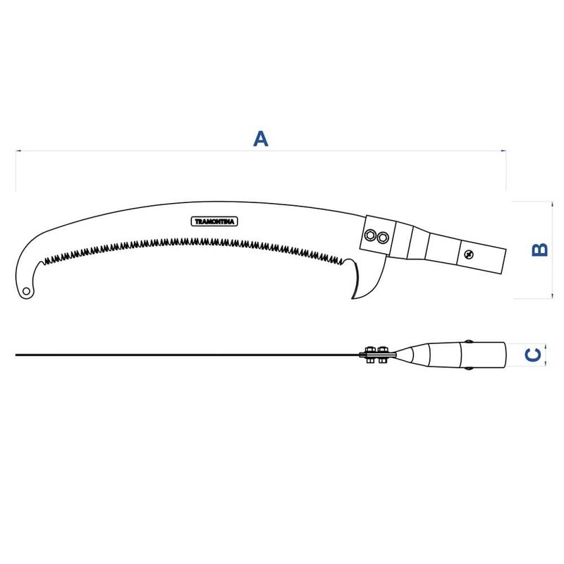 O serrote é próprio para poda em jardins e como auxiliar nas tarefas de camping. A lâmina feita em aço carbono, é flexível e de alta durabilidade. O formato especial da lâmina, com a linha de corte mais espessa que o dorso, reduz o atrito da peça com a madeira, proporcionando um corte mais fácil e suave. O perfil dos dentes,especialmente projetados para cortar nos dois sentidos de movimento, assegura um corte limpo, sem rebarbas, que facilita a cicatrização do galho. O elevado grau de afiação dos dentes, confere precisão de corte e dispensa retoques periódicos. Cabo metálico curto, com encaixe para cabo longo.