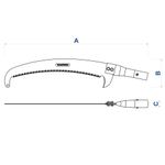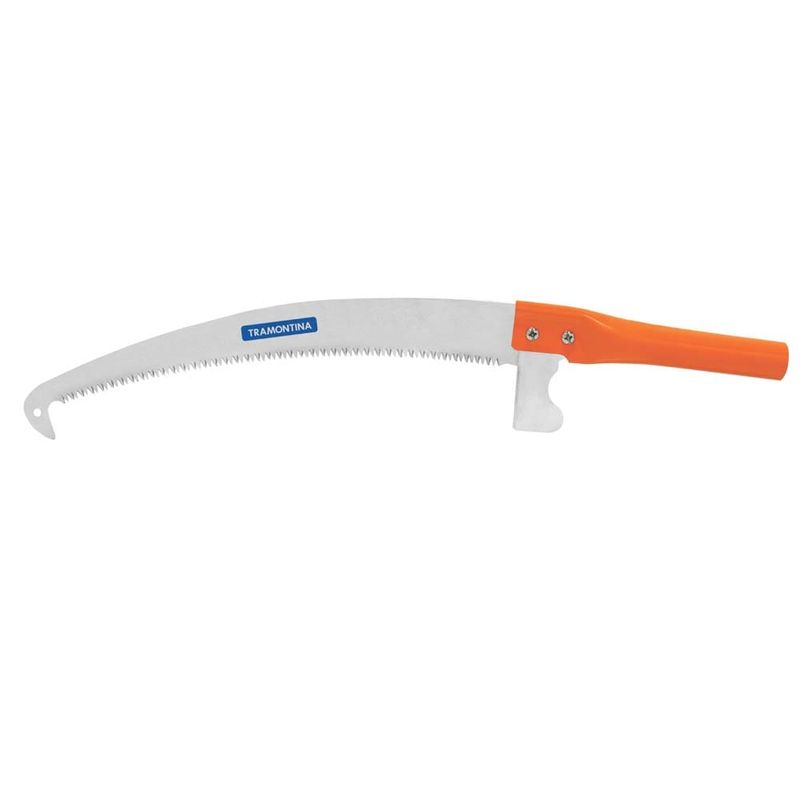 O serrote é próprio para poda em jardins e como auxiliar nas tarefas de camping. A lâmina feita em aço carbono, é flexível e de alta durabilidade. O formato especial da lâmina, com a linha de corte mais espessa que o dorso, reduz o atrito da peça com a madeira, proporcionando um corte mais fácil e suave. O perfil dos dentes,especialmente projetados para cortar nos dois sentidos de movimento, assegura um corte limpo, sem rebarbas, que facilita a cicatrização do galho. O elevado grau de afiação dos dentes, confere precisão de corte e dispensa retoques periódicos. Cabo metálico curto, com encaixe para cabo longo.
