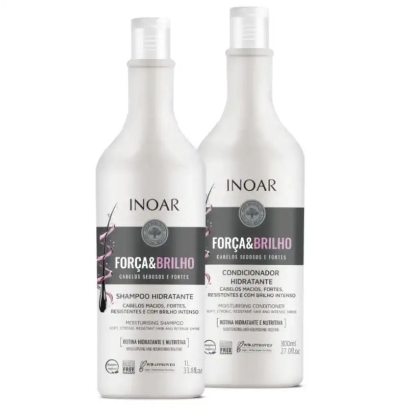 O Shampoo e Condicionador Inoar Força e Brilho de 1,8L é uma dupla poderosa que proporciona limpeza eficaz, hidratação e brilho intenso aos cabelos. Formulados com ingredientes que fortalecem a estrutura dos fios, esses produtos são ideais para quem deseja manter os cabelos saudáveis e radiantes. Shampoo: A fórmula do shampoo limpa suavemente, removendo impurezas sem agredir os fios. Enriquecido com ativos que promovem a força e a resistência dos cabelos, ele prepara os fios para receber os benefícios do condicionador. Condicionador: O condicionador complementa o tratamento, proporcionando hidratação profunda e selando as cutículas dos fios. Com isso, ele ajuda a reduzir o frizz e promove um brilho incrível, deixando os cabelos macios e fáceis de pentear. Modo de Uso: 1. Shampoo: Aplique uma quantidade adequada nos cabelos molhados, massageando suavemente o couro cabeludo e os fios até formar espuma. Enxágue bem. 2. Condicionador: Após o uso do shampoo, aplique o condicionador nos fios, evitando a raiz. Deixe agir por alguns minutos e enxágue bem.