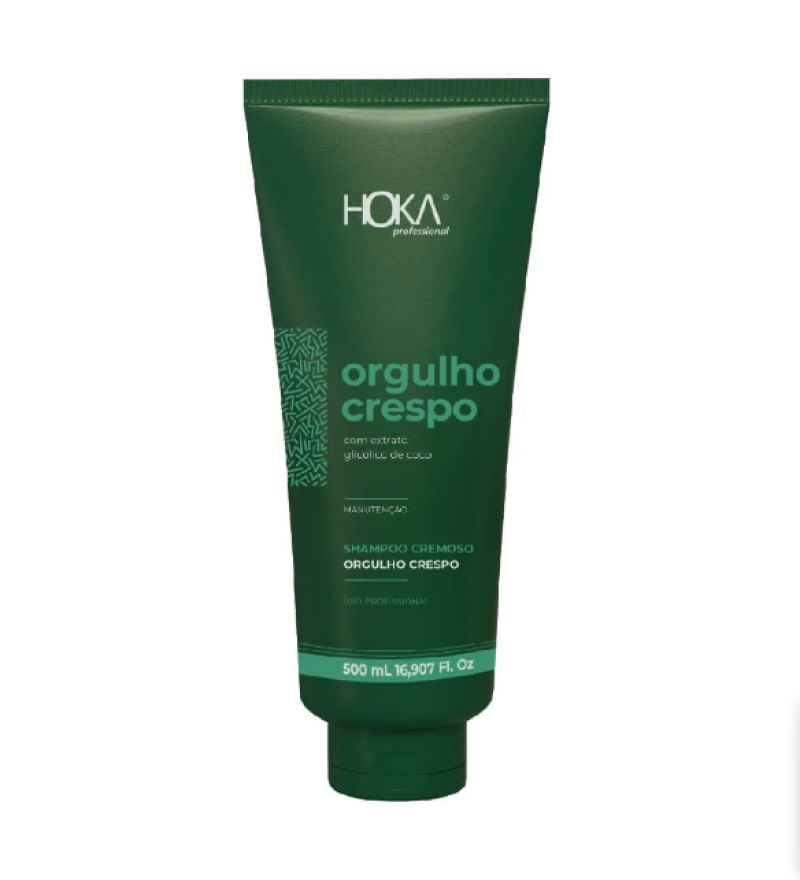 SHAMPOO ORGULHO CRESPO HOKA PROFESSIONAL CONTÉM: 1un (frasco) de Shampoo Cremoso Orgulho Crespo 500ml -Para cabelos cacheados, crespos, ondulados e em transição O Shampoo Cremoso Orgulho Crespo promove uma limpeza suave, combate ao frizz e ao ressecamento. TECNOLOGIA Com extrato glicólico de coco que possui propriedades suavizantes, emolientes de hidratantes. INDICAÇÃO: Desenvolvido especialmente para as necessidades do cabelo cacheado, ondulado e crespo. BENEFÍCIOS: Limpeza suave; Protege o couro cabeludo; Promove hidratação.MODO DE USAR: Passo 1: aplique nos cabelos molhados e massageie suavemente o couro cabeludo; Passo 2: Enxágue. #Dica 1: repita a operação se necessário. #Dica 2: use os outros produtos da linha Orgulho Crespo.