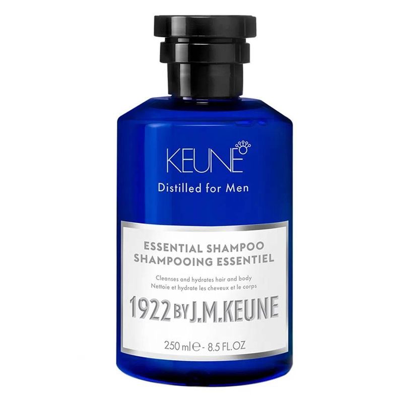 Shampoo Essential 1922 By J.M. Keune Masculino 250mlShampoo Essential 1922 By J.M. Keune. Indicado para a barba e o corpo do homem, pode ser usado todos os dias. É um shampoo hidratante enriquecido com creatina, cânhamo e extrato de bambu.A creatina melhora a estrutura do cabelo com ação reconstrutora, deixando-o mais resistente. Já o extrato de bambu melhora a irritação da pele e auxilia na produção de colágeno.Benefícios:Com o uso frequente, barba e cabelo ficam hidratados, fortes e tratados, ainda mais saudáveis e bonitos.Resultados:O resultado é corpo e cabelo limpos e frescos, fios fortalecidos e tratados, mais saudáveis e bonitos.Modo de Usar:**Para um resultado profissional em casa, coloque uma pequena quantidade de shampoo na palma da mão e aplique com os dedos no couro cabeludo úmido. Massageie em movimentos circulares para distribuir a espuma. Deixe agir por 1 minuto. Enxágue em água abundante. Repita o processo se necessário. Pode ser utilizado na barba ou corpo úmido.No corpo, aplique diretamente na mão ou com a ajuda de uma esponja macia sobre a pele. Depois, é só esfregar e enxaguar.