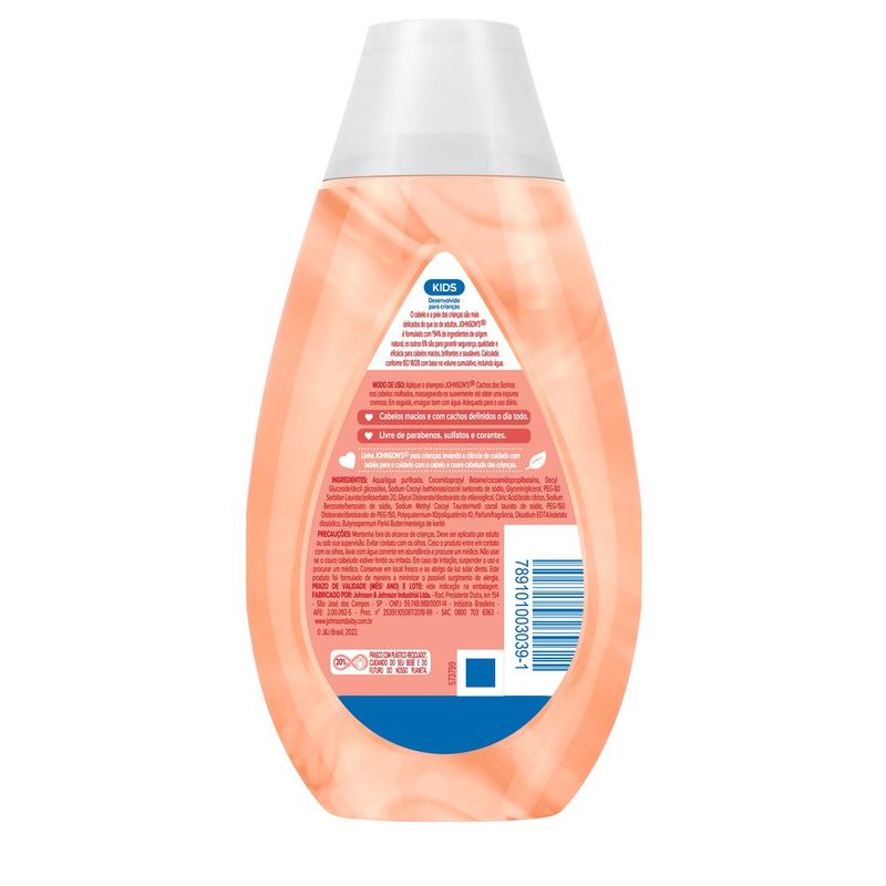 Shampoo Johnsons Cachos dos Sonhos 200mlO Shampoo JOHNSON'S Baby Cachos Definidos ajudam a controlar o volume do cabelo, deixando os cachos mais definidos e naturais. O Shampoo JOHNSON'S Baby é suave para o couro cabeludo delicado das crianças, além de contar com a exclusiva fórmula chega de lágrimas, que evita também a irritação nos olhos dos pequenos.