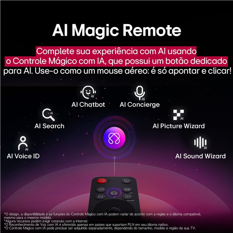 A Smart TV LG QNED 55QNED85ASG oferece uma experiência de cinema na sua casa, com tecnologias de ponta que transformam imagem e som em entretenimento de alto nível.Equipada com a tecnologia QNED MiniLED e resolução 4K Ultra HD, ela entrega imagens com contraste impressionante e cores vibrantes, graças ao suporte ao Dolby Vision, HDR10 e contraste dinâmico.O processador a8 AI Gen2 com inteligência artificial aprimora automaticamente imagem e som, enquanto o painel com frequência de 120Hz e tecnologia FreeSync garante fluidez em cenas de ação e jogos.Com o novo WebOS 25, você acessa facilmente seus apps favoritos como Netflix, Amazon Prime Video, Disney+ e Max. A TV também conta com Alexa integrada para comandos por voz, além de vir com o controle remoto Smart Magic.Em conectividade, destaca-se com Wi-Fi 6, Bluetooth 5.3, 4 entradas HDMI, 2 portas USB, além de saída óptica digital, entrada AV, RF e Ethernet.Tela QNED MiniLED 55”Resolução: 4K Ultra HD (3.840 x 2.160)Processador: a8 AI Gen2Dolby Vision, HDR10 e Dolby Atmos para som e imagem imersivosFrequência de atualização de 120Hz com FreeSyncSistema operacional WebOS 25Conectividade com Wi-Fi 6 e Bluetooth 5.3Entradas:4 HDMI, 2 USB, AV, RF, Ethernet, saída ópticaSom Estéreo 20W em canais 2.0Controle remoto Smart Magic inclusoFunção SAPVESA 300x300Cor: Charcoal BlackAlimentação: Bivolt / Tomada 10A – 3 pinosDimensões com base (LxAxP): 1236 x 783 x 257 mmDimensões sem base (LxAxP): 1236 x 716 x 30 mmBase (LxP): 25 x 257 mmPeso com base: 15,3 kgPeso sem base: 14,9 kgAnatel: 15652-20-01925Seu design elegante na cor Charcoal Black combina com qualquer ambiente. É bivolt, compatível com suporte VESA 300x300 e tem estrutura leve e ultrafina, com apenas 30 mm de profundidade sem base.