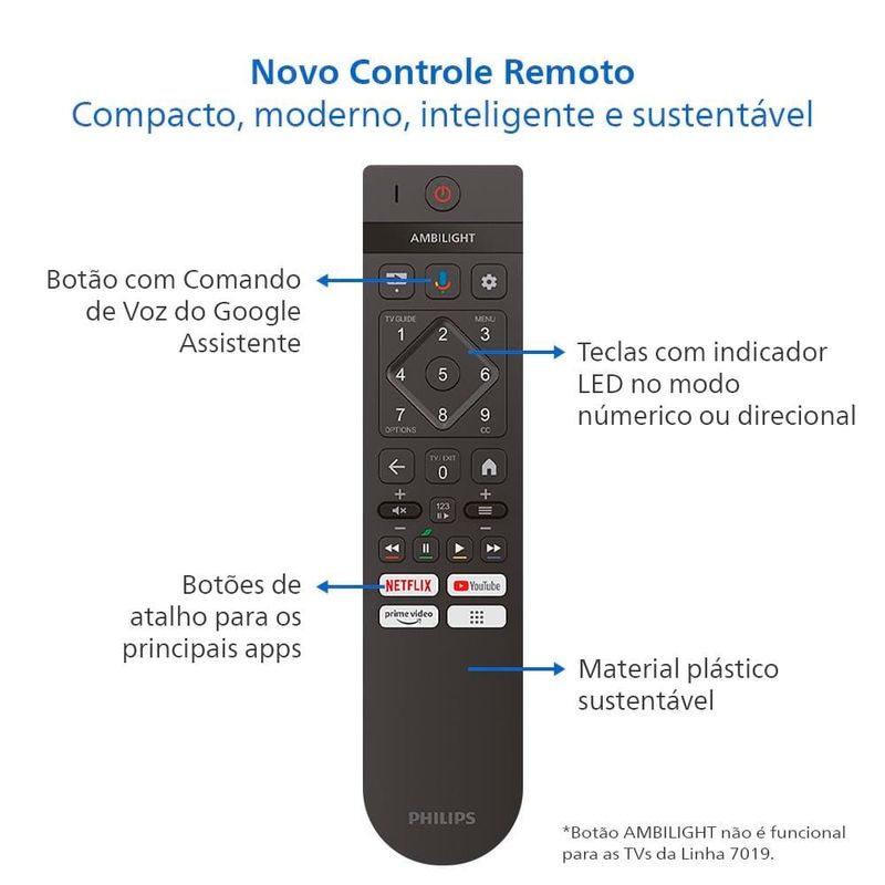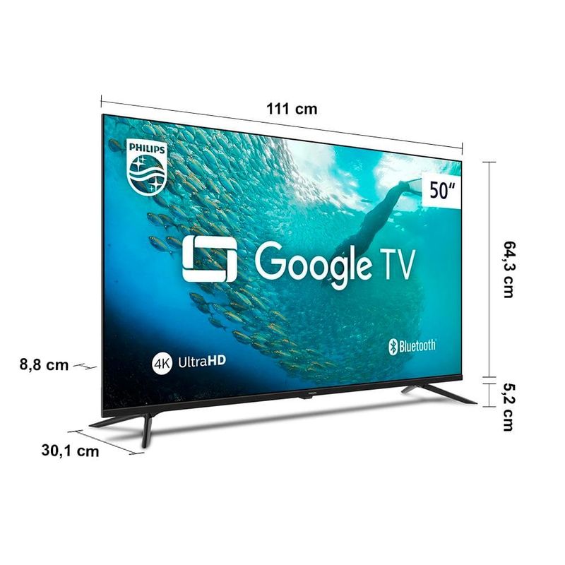 Smart TV LED 50" Ultra HD 4K Philips 50PUG7019 com Google TV, Comando de Voz, Wi-Fi, Entradas HDMI e USB