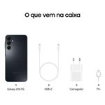 Caracteristicas: - Marca: Samsung - Modelo: SM-A165MZKRZTO - Cor: Preto Especificações Técnicas: - Proteção IP IP54 - Memória Interna total compartilhada 128GB - Suporte a Cartão de Memória - Tipo Cartão de Memória Suportado MicroSD - Capacidade do Cartão de Memória Até 1TB - Memória RAM 4GB Memória RAM Plus até 4GB - Modelo do Processador MediaTek | Helio G99 Velocidade do Processador 2.2GHz,2GHz - Capacidade da Bateria (mAh) 5000mAh - Tipo de Bateria Ions de Lítio - Voltagem Bi-Volt - Compatível com Carregamento Rápido (25W) - Câmera Tripla Traseira 50MP (Wide) +5MP (Ultra Wide) + 2MP (Macro) - Zoom Digital até 10x - Foco Automático (AF) - Flash-LED - Câmera Frontal 13MP - Flash Frontal na tela - Formatos Suportados para reprodução MP4,M4V,3GP,3G2,AVI,FLV,MKV,WEBM - Resolução de reprodução FHD (1920 x 1080) | 60fps - Resolução de gravação FHD (1920 x 1080) | 30fps - Formato suportado de Streaming 3GP,MP4,MP3 - Bluetooth v5.3 - Browser Google | Chrome; Samsung | Samsung Internet - Geração Wi-Fi 5 Conexão Wi-Fi 802.11a/b/g/n/ac 2.4GHz+5GHz, VHT80 Roteador Wi-Fi - NFC - 2 Chips Tipo de SIM Hybrid (SIM or MicroSD) USB 2.0 USB Conector USB Type-C - Tecnologia Super AMOLED - Taxa de atualização 60-90Hz - Tamanho do Display 6.7 | 169.1mm Número de Pixels 1080 x 2340 (FHD+) - Quantidade de Cores 16M - Tipos de Sensores Acelerômetro, sensor de impressão digital, sensor geomagnético, sensor de luz, sensor de proximidade virtual - Segurança Sensor de impressão digital lateral - GPS/A-GPS - Formato do Aparelho Barra - Sistema Operacional + Versão Android | 14.0 - Plataforma 64bit - Kit Embalagem Aparelho celular, carregador, cabo USB, Extrator de Chip e manual do usuário - Dimensões do Aparelho (mm) 77.9 x 164.4 x 7.9 Peso do Aparelho (g)200 - Dimensões da Caixa Unitária (mm) 171 x 85.90 x 37.20 Peso da Caixa Unitária (g)308 - Garantia 1 ano