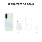 Desempenho excepcional com Samsung Galaxy A36O Samsung Galaxy A36 5G 128GB é um dispositivo de alta performance, oferecendo 6GB de RAM e 128GB de armazenamento, o que garante fluidez ao navegar entre aplicativos e realizar multitarefas. Com até 6 atualizações do sistema Android e 6 anos de atualizações de segurança, você pode contar com o aparelho por um longo tempo sem perder em funcionalidade. Sua certificação IP67 garante resistência à água e poeira, tornando o dispositivo adequado para diferentes situações e ambientes, desde o uso diário até exposições mais extremas à água e sujeira.Funcionalidades inovadoras com Inteligência ArtificialO Celular Galaxy A36 5G Verde traz recursos inovadores com inteligência artificial (AI), que tornam a experiência de uso mais prática e eficiente. O recurso Circule para Pesquisar no Google permite que você faça pesquisas instantâneas de textos, imagens ou sons diretamente na tela, sem precisar sair do aplicativo. Além disso, a edição inteligente de fotos utiliza AI para otimizar automaticamente suas imagens, ajustando aspectos como contraste, saturação e brilho. O apagador de objetos, também baseado em AI, sugere a remoção de elementos indesejados em suas fotos para uma experiência de edição mais precisa e simples.Autonomia e carregamento rápidoEquipado com o potente processador Snapdragon 6 Gen 3 (4nm) e uma bateria de 5.000 mAh, o smartphone oferece desempenho excepcional e autonomia de longa duração. O carregamento rápido de até 45W assegura que o aparelho esteja pronto para uso em pouco tempo, enquanto o áudio Dolby Atmos proporciona uma experiência sonora imersiva, seja para vídeos, jogos ou músicas, completando o entretenimento de forma envolvente e rica.Câmera tripla com Nightography e selfie impecávelCom uma câmera tripla de 50MP e recursos de Nightography, o Galaxy A36 128GB garante imagens de altíssima qualidade, mesmo em condições de pouca luz. A tecnologia Nightography ajusta automaticamente a exposição e o foco, garantindo fotos nítidas e detalhadas em qualquer situação. A câmera frontal de 12MP oferece selfies perfeitas, com cores vibrantes e detalhes precisos. Graças à AI, o dispositivo otimiza as configurações para capturar a melhor imagem possível, seja durante o dia ou à noite, oferecendo sempre resultados incríveis para compartilhar.Tela Super AMOLED e entretenimento imersivoO Galaxy A36 5G conta com uma tela Super AMOLED de 6.7", ideal para quem busca uma experiência visual envolvente. Sua tela grande e com cores vibrantes oferece uma visualização de alta qualidade, perfeita para assistir vídeos, jogar ou navegar. A tecnologia Vision Booster ajusta automaticamente o brilho da tela para garantir uma ótima visibilidade, mesmo sob luz intensa.