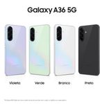 Desempenho de última geraçãoO Samsung Galaxy A36 5G chega para redefinir a experiência em smartphones com um processador de última geração, o Snapdragon 6 Gen 3. Fabricado em 4nm, este chip oferece desempenho superior, maior eficiência energética e é ideal para tarefas pesadas, como jogos e multitarefas. A combinação de 256GB de memória interna, 8GB de RAM e a arquitetura avançada do processador garantem que o dispositivo funcione de forma fluida e rápida, mesmo durante o uso intensivo. Fotos perfeitas em qualquer condiçãoA câmera tripla do celular Galaxy A36 5G traz recursos poderosos de inteligência artificial (AI), incluindo o inovador Nightography. Com sensores de até 50MP, a IA aprimora as imagens automaticamente, ajustando detalhes como brilho e contraste, especialmente em condições de baixa luminosidade. Isso permite fotos nítidas e vibrantes, seja de dia ou à noite. A capacidade de edição inteligente, com filtros personalizados e remoção de objetos indesejados, oferece ainda mais controle criativo, transformando cada foto em uma obra de arte.Design resistente com IP67O Galaxy A36 Violeta não é apenas bonito, mas também projetado para durar. Com certificação IP67, ele é resistente à água e poeira, podendo ser imerso em até 1 metro de profundidade por até 30 minutos, sem perder a funcionalidade. Isso significa que você pode levar seu smartphone para a praia, chuva ou até mesmo situações mais desafiadoras sem se preocupar com danos. A robustez do dispositivo é um reflexo do compromisso da Samsung em oferecer um produto que acompanhe o seu ritmo, seja qual for o ambiente.Tela super AMOLED de 6.7" com Vision Booster e bateria de longa duraçãoA tela Super AMOLED de 6.7" com Vision Booster do smartphone Galaxy A36 256GB oferece uma experiência visual imersiva, com cores vibrantes e um ajuste automático de brilho para garantir boa visibilidade até sob luz intensa. Seja assistindo a vídeos ou navegando por fotos, cada detalhe se torna mais nítido e impressionante. Com uma bateria de 5000 mAh e carregamento rápido de até 45W, o dispositivo garante horas de uso contínuo, permitindo que você aproveite o seu smartphone por mais tempo, com menos pausas para recarregar. A adição do áudio Dolby Atmos transforma cada conteúdo em uma experiência sonora envolvente, seja assistindo a filmes ou ouvindo suas músicas favoritas.