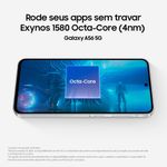 Tecnologia e Durabilidade para o Dia a DiaO Smartphone Samsung Galaxy A56 5G conta com tela imersiva de 6.7" Super AMOLED com Vision Booster, o celular oferece cores vibrantes e ótima visibilidade mesmo sob a luz do sol. A bateria de 5000mAh com carregamento rápido de até 45W garante horas de uso sem preocupações. Além disso, o modelo conta com proteção IP67, sendo resistente à água e poeira, e oferece até 6 anos de atualizações de Android e segurança, assegurando um smartphone moderno e duradouro.Inteligência Artificial para uma Experiência InovadoraA inteligência artificial está presente em diversos recursos do Celular Galaxy A56 5G, como o Circule para Pesquisar no Google, que permite encontrar informações instantaneamente sem precisar abrir outros aplicativos. Com funções avançadas de edição, o smartphone possibilita ajustes automáticos em fotos e vídeos, incluindo a remoção de objetos indesejados, correção de poses em fotos em movimento e personalização de filtros para um toque único em cada imagem.Câmeras Potentes para Capturar Cada MomentoA captura de momentos especiais fica ainda melhor com o conjunto triplo de câmeras de até 50MP e a tecnologia Nightography, que possibilita fotos incríveis mesmo em ambientes com pouca luz. A câmera frontal de 12MP com redução de ruído e vídeo HDR proporciona selfies nítidas em qualquer iluminação. O celular ainda conta com edição inteligente de vídeos, permitindo cortes automáticos e seleção das melhores cenas com o auxílio da AI.Desempenho Rápido e Armazenamento AmploPara quem busca alto desempenho, o Smartphone Samsung Galaxy A56 5G vem equipado com o processador Exynos 1580 (4nm), garantindo fluidez em jogos e aplicativos. Com 128GB de armazenamento e até 8GB de RAM, há espaço de sobra para guardar fotos, vídeos e aplicativos. O design moderno e minimalista proporciona conforto ao segurar o aparelho, enquanto a tecnologia Dolby Atmos entrega áudio imersivo para uma experiência completa. Seja para entretenimento, trabalho ou redes sociais, o Celular Galaxy A56 5G é a opção ideal para estar sempre conectado.
