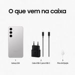 O Samsung Galaxy S24 foi projetado para oferecer uma experiência imersiva e ágil, com o processador o Exynos 2400 é possível desfrutar de jogos sem interrupções, multitarefa fluida e navegação ultrarrápida, tudo isso impulsionado pela mais avançada tecnologia de processamento. E não para por aí. O auge desse aparelho é a IA, uma inteligência artificial que traduz simultaneamente as chamadas telefônicas e mensagens de textos em diversos aplicativos, não é demais? Com um design elegante e recursos incríveis, o Galaxy S24 é mais do que um smartphone, é uma experiência revolucionária que coloca o poder do futuro nas palmas de suas mãos. O design premium conta com tela infinita de 6.2"e tecnologia Dynamic AMOLED 2X, resolução Full HD, câmera traseira tripla e câmera frontal de 12MP. Tudo isso para você registrar os melhores momentos e experiências. O Galaxy S24 é mais do que um dispositivo tecnológico; é uma declaração de estilo. Leve-o para qualquer lugar e impressione com um design que combina perfeitamente forma e função.