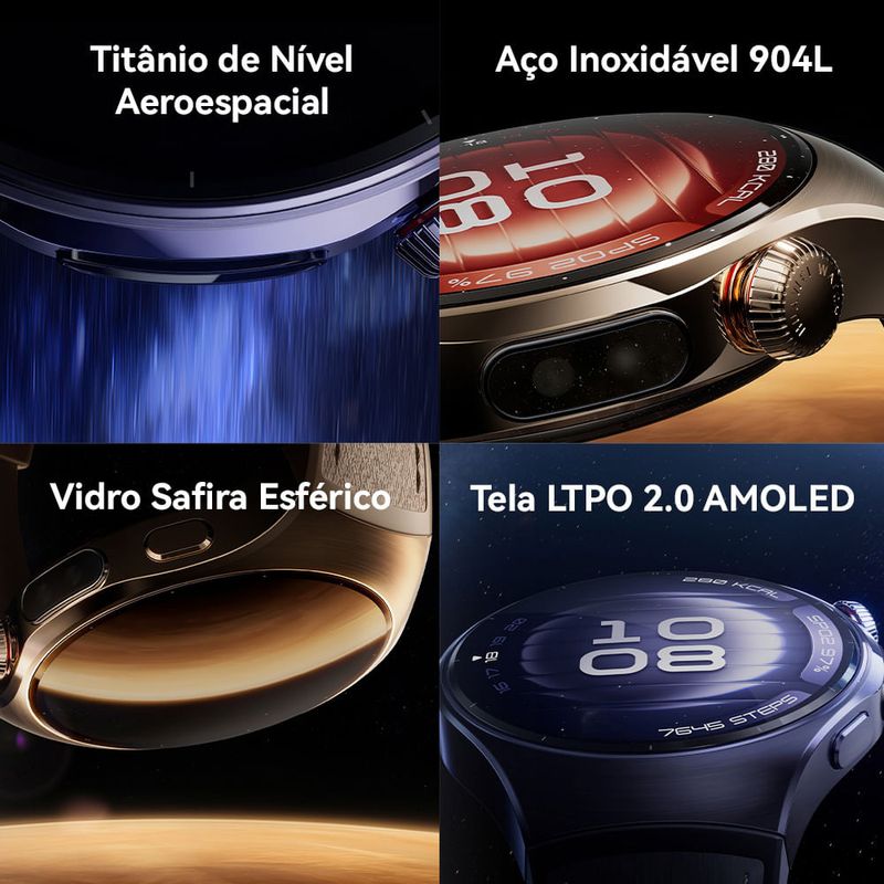 Características Sistema OperacionalHarmony OS TelaTamanho da Tela: 46 mmMaterial Tela: Vidro safira esférico ConectividadeBluetooth Capacidade32GB * * Parte da memória interna já é utilizada pelo sistema operacional e aplicativos pré-instalados Memória RAM2GB CaixaMaterial da Caixa: Titânio de nível aeroespacial PulseiraTitânio BateriaDuração da Bateria: Até 11 diasCarregamento: SuperCharger Outros RecursosChamadas de celular com eSIM Navegação sem telefoneTecnologia X-TAP MultissensorialOxigênio no Sangue na Ponta dos Dedos CompatibilidadeiOS e Android EAN6942103154676 Especificações TécnicasModelo: 14277Garantia: 12 meses Dimensões e PesoDimensões do produto sem embalagem (AxLxP): 46x46,7x11,3 mmDimensões do produto com embalagem (AxLxP): 120x120x65 mmPeso do produto sem embalagem: 0,35 KgPeso do produto com embalagem: 0,58 Kg Itens Inclusos01 Relógio01 Carregador SuperCharger