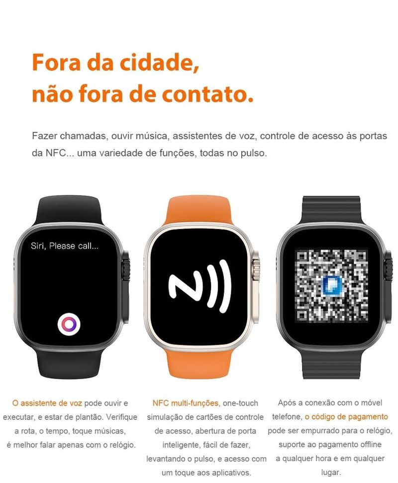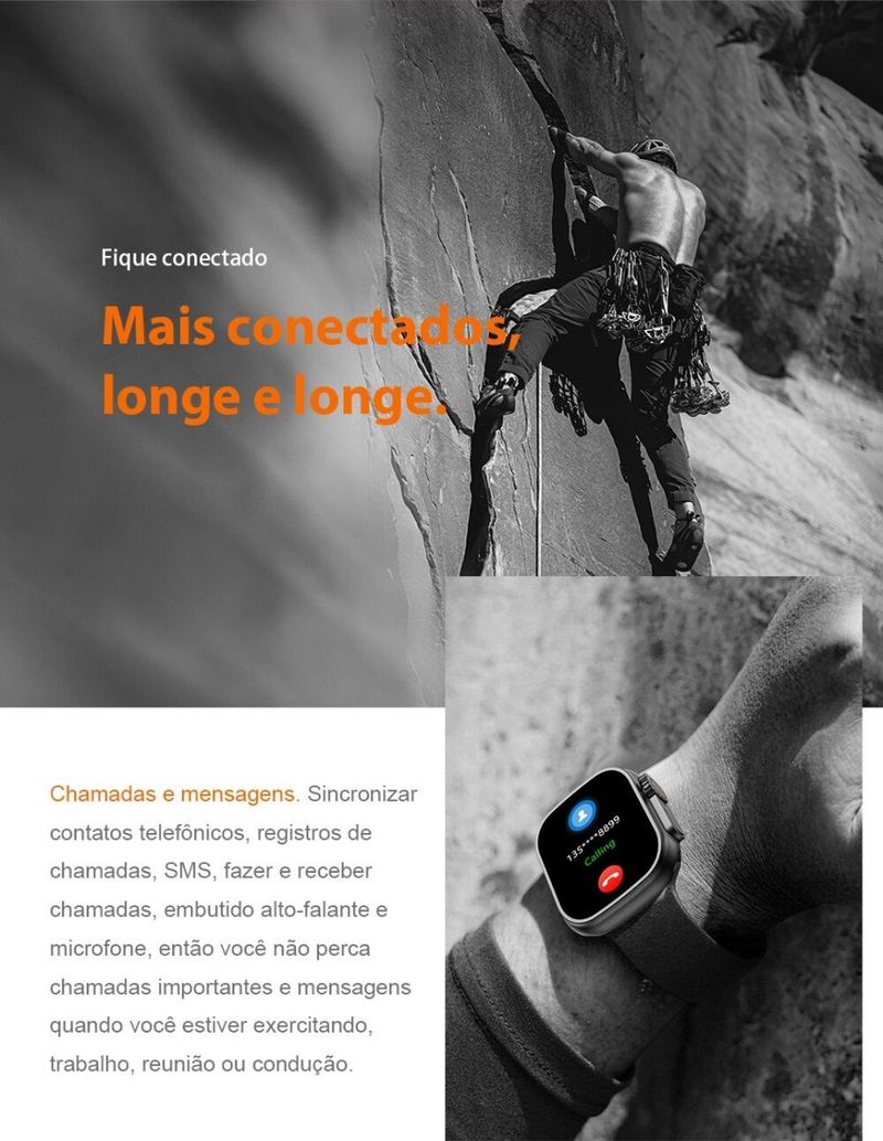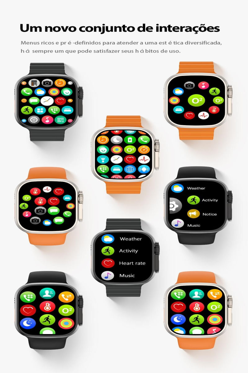 A Akgstreet Moda e Acessórios foi fundada em 2018 com o intuito de proporcionar praticidade e lazer com acessórios tecnológicos e de qualidade aos nossos clientes. CARACTERÍSTICAS: O Smartwatch W68 Ultra Max Serie 8 de 49mm é a escolha definitiva para quem busca sofisticação e funcionalidade. Com NFC integrado, você pode fazer tudo com mais facilidade. Além disso, este smartwatch oferece: - Monitoramento cardíaco em tempo real. - Rastreamento de atividades físicas. - Notificações de chamadas e mensagens. - Tela de 49mm de alta definição. - Bateria de longa duração. - Resistência à água. Este é o acessório perfeito para aprimorar seu estilo de vida e permanecer conectado. Adquira o Smartwatch W68 Ultra Max Serie 8 na Akgstreet hoje mesmo! Compatível com Sistema Android/Ios; 49mm (Tamanho único); - Tela de 2.2 Polegadas, 320*384px pixel; - Always On na tela; - Atalhos Rápidos Na Tela; - Guia de App - Opção de Troca de Pulseira; - 3 botões Laterais Funcionais; - Coroa com a função Giratória disponível; - Sistema NFC Disponível (NÃO FAZ PAGAMENTOS) - Faz e Recebe Chamadas Telefônicas; - Notificações Frequentes; - SOS - Histórico de Chamadas; - Desbloqueio de Tela Por Senha; - Assistente de Voz (Siri/Google); - Monitor de Passos; - Monitor de Colorias; - Monitor de km; - Monitor de Sono; - App Treino Respiratório; - Monitor de Batimentos Cardíacos; - Monitor de Pressão Arterial; - Monitor de oxigênio No Sangue; - Monitor de ECG; - Monitor De Ciclo menstrual; - Termômetro; - Calculadora; - Jogos; - Mercado de App; - Massagem; - Music Player; - Monitor de esportes (100 modalidades); - Opção de Usar o GPS do Aparelho Celular para Treinos Externos; - Cartão de Visitas; - Lanterna; - Despertador; - Cronometro; - Temporizador; - Clima; - Recebe Mensagens de WhatsApp, redes Sociais e Muito Mais; - Encontrar o Telefone; - 8 estilos diferentes de Menu; - Lembrete de Sedentarismo; - Lembrete de Beber Água; - 5 Whatfaces diferentes (papéis de parede); - APP com Mais opções de Whatch Faces Para Baixar; - Pode Baixar fotos do Celular; ESPECIFICAÇÕES: INFORMAÇÕES TÉCNICAS Marca: Microwear CONECTIVIDADE – Bluetooth Certificação IP67 Suporta apenas Respingos - Não Indicado Para Tomar Banho ou Mergulho; Aplicativo: MACTIVEPRO DIMENSÕES: Largura x altura x comprimento: Medidas aproximadas 21cm x 11,9cm x 3,3cm Peso: 0.240 kg INFORMAÇÕES IMPORTANTES: Todos os Smartwatch vão com selo de garantia, não retirar os selos enquanto a garantia estiver vigente. Usar somente fonte de carregamento até 5v 1A. Todas as informações técnicas são de responsabilidade do fabricante/fornecedor. As cores podem variar de acordo com o aparelho que é visualizado. Imagens meramente ilustrativas. ITENS INCLUSOS: A embalagem contém: 1 Smartwatch W68 Ultra Max Serie 8 49mm NFC, GPS 2,2" Ligações + 1x Carregador (Indução) + 1x Manual + 1x Pulseira (Silicone). APROVEITE OUTROS PRODUTOS Aproveite comprando mais produtos na Akgstreet. Para ver todos os nossos produtos, clique em “ver mais anúncios do vendedor” e adicione os produtos que deseja no seu carrinho de compras antes de finalizar. ESTÁ COM DÚVIDAS? Quaisquer dúvidas ou sugestões, fique à vontade para nos enviar mensagens no campo de perguntas. Nossos atendentes estão de prontidão para lhe auxiliar o mais breve possível. NOSSA GARANTIA: Nossos produtos têm 90 dias de garantia contra defeitos de fabricação, de acordo com o Código de Defesa do Consumidor.