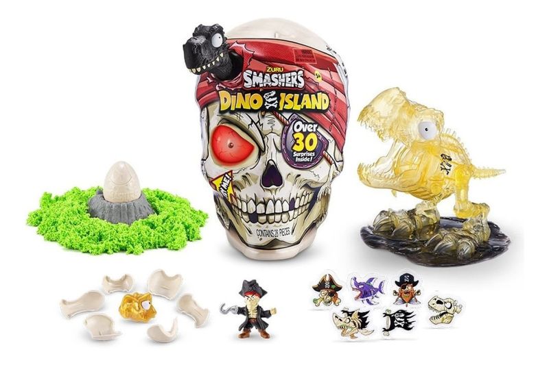 Smashers - Ovo Dino Cabeca do Pirata - Preto - STARTSmashers Ovo Dino Cabeça de Pirata Extra Grande é um brinquedo unbox que vem com várias peças para montar Para descobrir o que vem dentro do ovo, basta jogá-lo no chão para abri-lo, seguir o mapa e as crianças encontrarão partes do dinossauro que estão escondidas em areia e slimeDetalhes: Certificação: Certificado Pelos Órgãos Autorizados - OCP`S(Organismos De Certificação De Produtos) Código De Certificação: CE-BRI/INNAC 02115-000 NM 300/2002 OCP 0061Características: Conteúdo da Embalagem:1 Caveira Smasher,1 Estatua Pirata Smasher,1 Caveira Dourada Colecionavel,1 Areia Dinossauro,1 Slime Dinossauro,1 Espuma Dinossauro,6 Adsivos 3D ,5 Mine Ovos Smasher com Personagens Surpresa,1 Reconstrutor de Ovos Smasher,1 Smash-o-ssauro,1 Olho Removivel,1 Ficha de Instruções,1 Guia de Coleção,1 Mapa Material/Composição: Plástico Código de Barras:7908489401765 Ref:F0092-7 Marca:Barão Modelo:Smashers Requer Pilhas: 3 Baterias 15V AG13/A76/LR44 Altura aproximada do produto: 31,5cm As cores podem variar entre as imagens mostradas acima Imagens meramente ilustrativas Garantia: 3 Meses Contra Defeitos De Fabricação