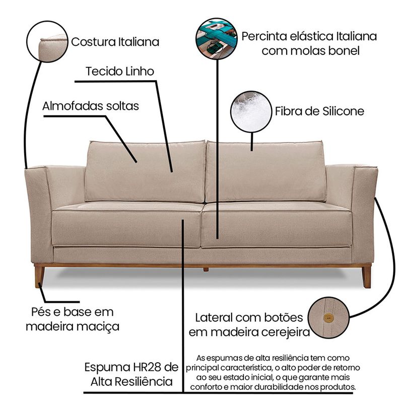 O Sofá 2 Lugares Grace é um produto que combina elegância, conforto e durabilidade. Ele tem um design moderno e sofisticado, com pés em madeira maciça e revestimento em tecido Linho Rústico Areia, que harmonizam com qualquer ambiente. Ele é ideal para sala de estar, recepções ou qualquer outro espaço que você queira decorar com estilo e bom gosto. Ele tem uma estrutura em madeira maciça, que garante a resistência e a sustentabilidade do produto. Com medidas de 170 cm ele suporta até 140 Kg de peso, podendo ser utilizado por pessoas de diferentes biótipos. Ele tem um acabamento reforçado com espuma de qualidade no assento Fixo com percintas elásticas italiana, molas bonnel e espuma HR 28 e plumante em silicone, que oferece maciez e aconchego. Acompanha 2 almofadas decorativas ( Enchimento fibra de silicone), costura italiana. Nas braças do lado externo contém botões em madeira cerejeira com altura de 15cm, cor mel. Tem pés em madeira maciça, que protegem o produto contra corrosão e desgaste. O Sofá Grace é um produto de alta qualidade, beleza e funcionalidade. Ela é fácil de transportar, pois tem um peso leve e um tamanho compacto. O Sofá Grace é um produto que vai fazer a diferença na sua decoração e no seu bem-estar. Ele vai trazer charme, conforto e durabilidade para o seu ambiente. Aproveite essa oferta e leve para casa um sofá de qualidade por um preço incrível. Essa é a sua chance de ter um sofá maravilhoso por um preço imperdível. Corra e garanta a sua antes que acabe o estoque! Dimensões do Sofá: Altura total: 90 cm Largura total: 170 cm Profundidade total: 92 cm Peso: 43 kg Altura do Braço: 72 cm Altura do chão ao Assento: 48 cm Altura do Encosto: 42 cm Profundidade do Assento: 54 cm Largura do Braço: 17 cm Altura dos pés: 13 cm Especificações do Produto Estrutura: Madeira Maciça Tipo de Encosto: Almofadas soltas em fibra de silicone Tipo de Acabamento: Costura Italiana Tipo de Assento: Fixo com percintas elásticas italiana, molas bonel e espuma HR28 Quantidade de Lugares: 2 Lugares Tecido: Linho Diferenciais: Botões nas laterais em madeira de cerejeira na cor mel, 15 cm Tipo de pés: Pés e Base Fixo em Madeira Maciça Peso suportado: Até 140 Kg Garantia: 90 dias contra defeito de fabricação Montagem: O produto é enviado montado, sendo necessário somente fixar os pés Instruções de limpeza: Utilizar um pano limpo e levemente úmido Você irá receber: 01 Sofá Entregue em: 01 Volume
