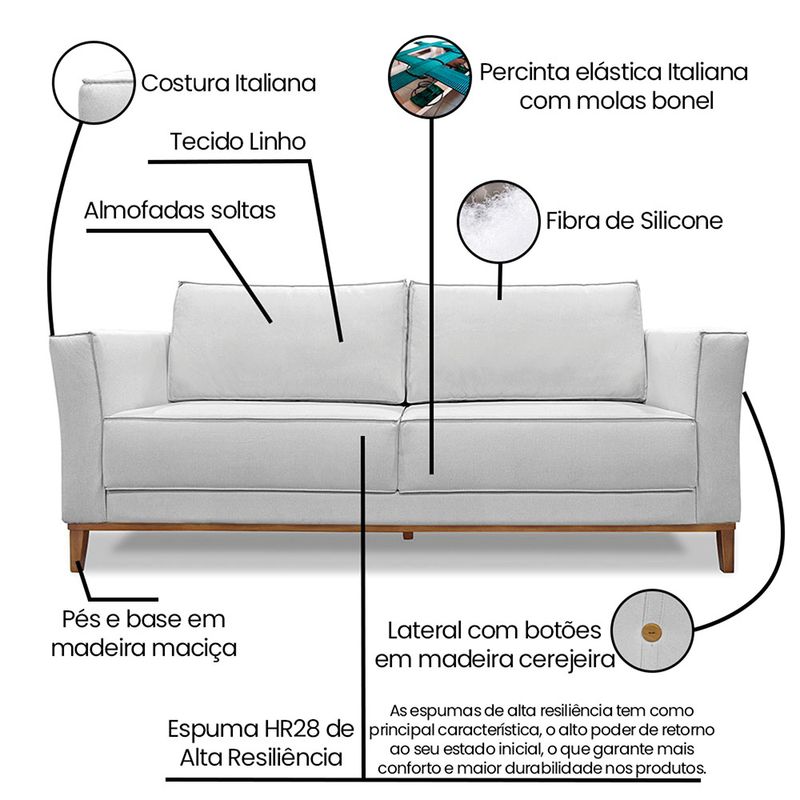 O Sofá 2 Lugares Grace é um produto que combina elegância, conforto e durabilidade. Ele tem um design moderno e sofisticado, com pés em madeira maciça e revestimento em tecido Linho Rústico Grigio, que harmonizam com qualquer ambiente. Ele é ideal para sala de estar, recepções ou qualquer outro espaço que você queira decorar com estilo e bom gosto. Ele tem uma estrutura em madeira maciça, que garante a resistência e a sustentabilidade do produto. Com medidas de 170 cm ele suporta até 140 Kg de peso, podendo ser utilizado por pessoas de diferentes biótipos. Ele tem um acabamento reforçado com espuma de qualidade no assento Fixo com percintas elásticas italiana, molas bonnel e espuma HR 28 e plumante em silicone, que oferece maciez e aconchego. Acompanha 2 almofadas decorativas ( Enchimento fibra de silicone), costura italiana. Nas braças do lado externo contém botões em madeira cerejeira com altura de 15cm, cor mel. Tem pés em madeira maciça, que protegem o produto contra corrosão e desgaste. O Sofá Grace é um produto de alta qualidade, beleza e funcionalidade. Ela é fácil de transportar, pois tem um peso leve e um tamanho compacto. O Sofá Grace é um produto que vai fazer a diferença na sua decoração e no seu bem-estar. Ele vai trazer charme, conforto e durabilidade para o seu ambiente. Aproveite essa oferta e leve para casa um sofá de qualidade por um preço incrível. Essa é a sua chance de ter um sofá maravilhoso por um preço imperdível. Corra e garanta a sua antes que acabe o estoque! Dimensões do Sofá: Altura total: 90 cm Largura total: 170 cm Profundidade total: 92 cm Peso: 43 kg Altura do Braço: 72 cm Altura do chão ao Assento: 48 cm Altura do Encosto: 42 cm Profundidade do Assento: 54 cm Largura do Braço: 17 cm Altura dos pés: 13 cm Especificações do Produto Estrutura: Madeira Maciça Tipo de Encosto: Almofadas soltas em fibra de silicone Tipo de Acabamento: Costura Italiana Tipo de Assento: Fixo com percintas elásticas italiana, molas bonel e espuma HR28 Quantidade de Lugares: 2 Lugares Tecido: Linho Diferenciais: Botões nas laterais em madeira de cerejeira na cor mel, 15 cm Tipo de pés: Pés e Base Fixo em Madeira Maciça Peso suportado: Até 140 Kg Garantia: 90 dias contra defeito de fabricação Montagem: O produto é enviado montado, sendo necessário somente fixar os pés Instruções de limpeza: Utilizar um pano limpo e levemente úmido Você irá receber: 01 Sofá Entregue em: 01 Volume
