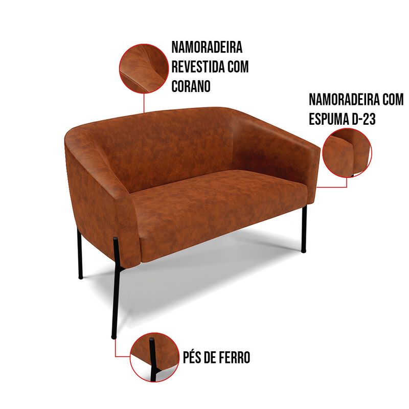 O Sofá Namoradeira 2 lugares Stella é uma peça que combina elegância, conforto e durabilidade. Este Sofá Namoradeira tem um design moderno e sofisticado, com pés de ferro lateral preto e revestimento em tecido Corano, que harmonizam com qualquer ambiente. Ele é ideal para sala de estar, recepções, mesa de jantar ou qualquer outro espaço que você queira decorar com estilo e bom gosto. Ele tem uma estrutura em madeira de reflorestamento eucalipto, que garante a resistência e a sustentabilidade do produto. Ele suporta até 120 kg de peso, podendo ser utilizado por pessoas de diferentes biotipos. Ele tem um acabamento reforçado e espuma de qualidade D23, que oferece maciez e aconchego. Tem pés em aço carbono e pintura eletrostática, que protegem o produto contra corrosão e desgaste. Ele tem assento com persintas elásticas, que proporcionam flexibilidade e conforto. O Sofá Namoradeira Stella é um produto de alta qualidade, beleza e funcionalidade. Ele é fácil de transportar, pois tem um peso leve e um tamanho compacto. O Sofá Namoradeira Stella é um produto que vai fazer a diferença na sua decoração e no seu bem-estar. Ele vai trazer charme, conforto e durabilidade para o seu ambiente. Aproveite essa oferta e leve para casa um Sofá Namoradeirade qualidade por um preço incrível. Essa é a sua chance de ter um sofá Namoradeira maravilhoso por um preço imperdível. Corra e garanta seu Sofá Namoradeira 2 lugares antes que acabe o estoque! Dimensões da Namoradeira Altura total: 81 cm Largura total: 127 cm Profundidade total: 60 cm Altura do encosto: 40 cm Largura do assento: 95 cm Profundidade do assento: 45 cm Altura do chão ao assento: 45 cm Espessura do assento: 15 cm Altura do chão ao braço: 70 cm Altura interna do braço: 28 cm Tamanho dos pés: 30 cm Espessura do braço: 7 cm Peso: 21 kg Especificações do Produto Estrutura: Madeira Eucalipto Espuma: D-23 Tecido: Corano Tipo de pés: Pés de Ferro Lateral Peso suportado: Até 120 Kg Garantia: 90 dias contra defeito de fabricação Montagem: O produto vai montado, apenas parafusar a os pés Instruções de limpeza: Utilizar um pano limpo e levemente úmido Você irá receber: 01 Sofá Namoradeira - Entregue em: 01 Volume