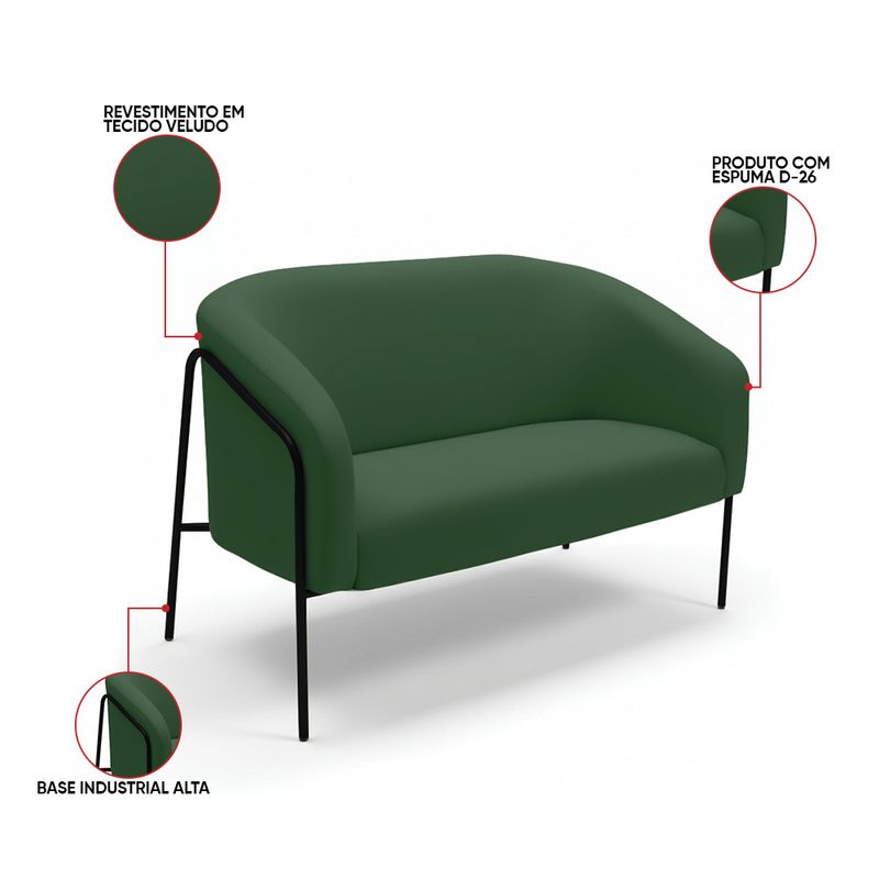 A Namoradeira Stella Base Alta Veludo Verde é um móvel que une design moderno, conforto e sofisticação, ideal para compor salas de estar, recepções e ambientes decorativos. Seu formato elegante e estrutura elevada valorizam o espaço, trazendo leveza e requinte à decoração. Produzida com estrutura em madeira de eucalipto reflorestado e base em aço tubular na cor preta, garante durabilidade, estabilidade e resistência. O assento em espuma D-26 proporciona firmeza e conforto, enquanto o encosto e os braços em espuma D-23 oferecem um toque macio e ergonômico, se adaptando perfeitamente a diferentes estilos de decoração, do clássico ao contemporâneo. A namoradeira é perfeita para quem busca um sofá pequeno e sofisticado, unindo beleza, qualidade e conforto. O acabamento refinado e o design atemporal fazem dessa peça uma excelente escolha para transformar o ambiente com elegância e estilo. Dimensões do Produto: Altura Total: 80 cm Largura Total: 120 cm Profundidade Total: 63 cm Altura Interna do Encosto: 39 cm Espessura do Braço: 13 cm Altura do Braço ao chão: 70 cm Profundidade do Assento: 45 cm Altura do chão ao Assento: 45 cm Peso: 19 kg Especificações do Produto: Estrutura: Madeira Eucalipto; Base em Aço Revestimento: VeludoMaterial do Estofamento: Assento D-26; Encosto e braço D-23 Quantidade de Lugares : 2 Lugares Sofá Possui Braça: Não Peso Suportado: Até 120 Kg Tipo de Pés: Base Industrial Tubular Alta Tipo de Encosto: Fixo Tipo de Assento: Fixo É retrátil: Não É reclinável: Não Diferenciais: Modelo Orgânico; Design moderno e acolherdor, ideal para duas pessoas. Montagem: O produto vai montado, apenas parafusar a base Complexidade da Montagem: Baixa Garantia: 90 dias contra defeito de fabricação Instruções de Limpeza: Utilizar um pano limpo e levemente úmido Quantidade de Volumes: 1 Caixa Medida das Embalagens: Caixa 1 : 119 x 69 x 59 cm Peso Produto Embalado: 21 kg Entrega: É feita somente até o térreo ou portaria. Confira sempre as medidas das embalagens para assegurar que o produto passe por portas e escadas do local.