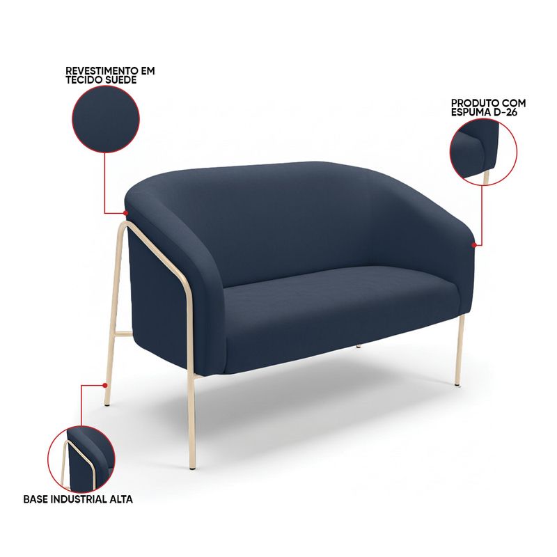 A Namoradeira Stella Base Alta Suede Azul Marinho é um móvel que une design moderno, conforto e sofisticação, ideal para compor salas de estar, recepções e ambientes decorativos. Seu formato elegante e estrutura elevada valorizam o espaço, trazendo leveza e requinte à decoração. Produzida com estrutura em madeira de eucalipto reflorestado e base em aço tubular na cor champanhe, garante durabilidade, estabilidade e resistência. O assento em espuma D-26 proporciona firmeza e conforto, enquanto o encosto e os braços em espuma D-23 oferecem um toque macio e ergonômico, se adaptando perfeitamente a diferentes estilos de decoração, do clássico ao contemporâneo. A namoradeira é perfeita para quem busca um sofá pequeno e sofisticado, unindo beleza, qualidade e conforto. O acabamento refinado e o design atemporal fazem dessa peça uma excelente escolha para transformar o ambiente com elegância e estilo. Dimensões do Produto: Altura Total: 80 cm Largura Total: 120 cm Profundidade Total: 63 cm Altura Interna do Encosto: 39 cm Espessura do Braço: 13 cm Altura do Braço ao chão: 70 cm Profundidade do Assento: 45 cm Altura do chão ao Assento: 45 cm Peso: 19 kg Especificações do Produto: Estrutura: Madeira Eucalipto; Base em Aço Revestimento: Suede Material do Estofamento: Assento D-26; Encosto e braço D-23 Quantidade de Lugares : 2 Lugares Sofá Possui Braça: Não Peso Suportado: Até 120 Kg Tipo de Pés: Base Industrial Tubular Alta Tipo de Encosto: Fixo Tipo de Assento: Fixo É retrátil: Não É reclinável: Não Diferenciais: Modelo Orgânico; Design moderno e acolherdor, ideal para duas pessoas. Montagem: O produto vai montado, apenas parafusar a base Complexidade da Montagem: Baixa Garantia: 90 dias contra defeito de fabricação Instruções de Limpeza: Utilizar um pano limpo e levemente úmido Quantidade de Volumes: 1 Caixa Medida das Embalagens: Caixa 1 : 119 x 69 x 59 cm Peso Produto Embalado: 21 kg Entrega: É feita somente até o térreo ou portaria. Confira sempre as medidas das embalagens para assegurar que o produto passe por portas e escadas do local.